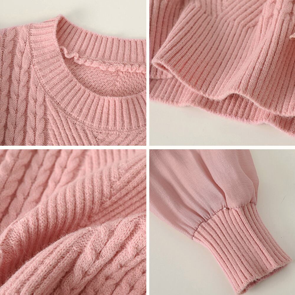 レイヤード風トップス ボリューム袖 リブニットプルオーバー きれいめ ドッキング ニットブラウス 長袖 春秋冬 重ね着風