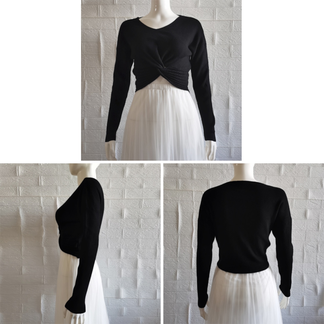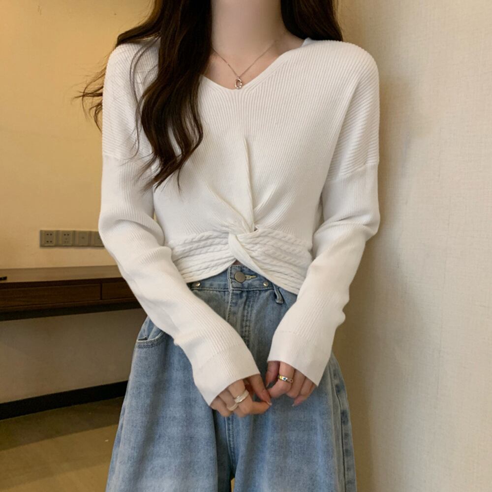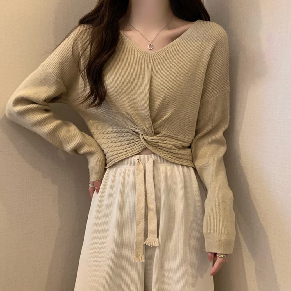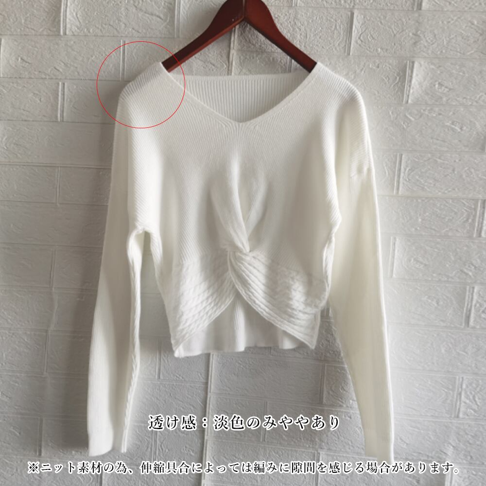 クロップド丈 ニットウェア ねじり リブニット 長袖 無地 大人可愛い ニットセーター カジュアル ニットソー 普段着