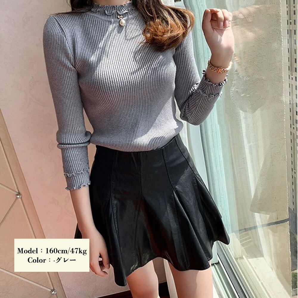 きれいめリブニット 新作着やせセーター 大人可愛いトップス