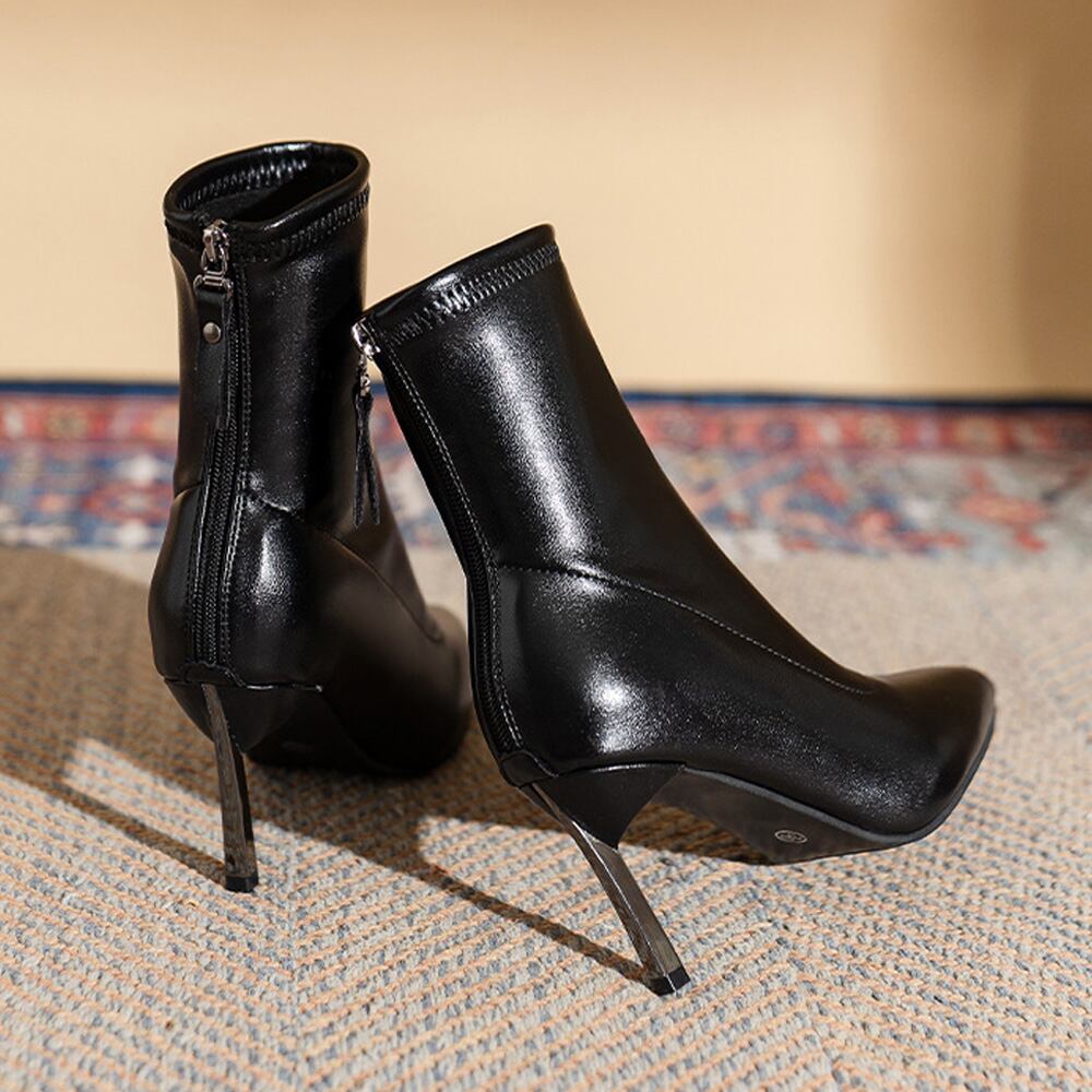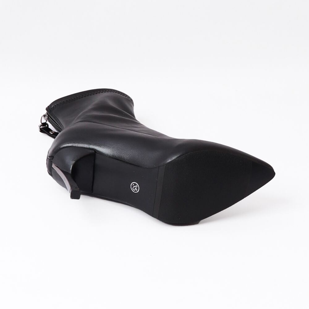 ピンヒールブーツ黒 ファスナー付き 靴 新作レザー調ブーツ