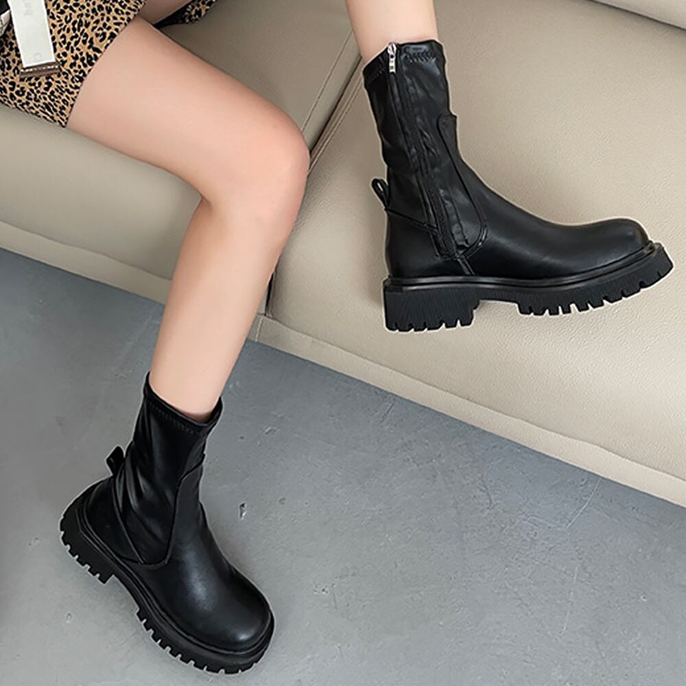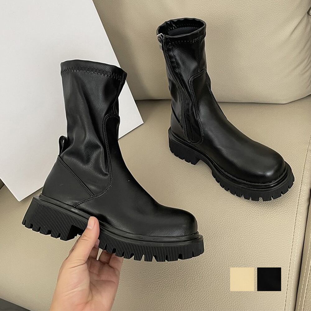 美脚 厚底ブーツ ジッパー付きブーツ 新作履きやすいくつ