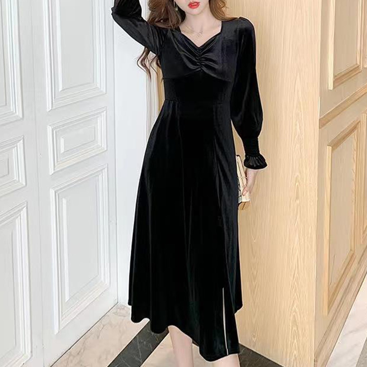 柔らかくとろみのある落ち感で着心地の良さを実感していただける長袖ベルベットワンピースです。