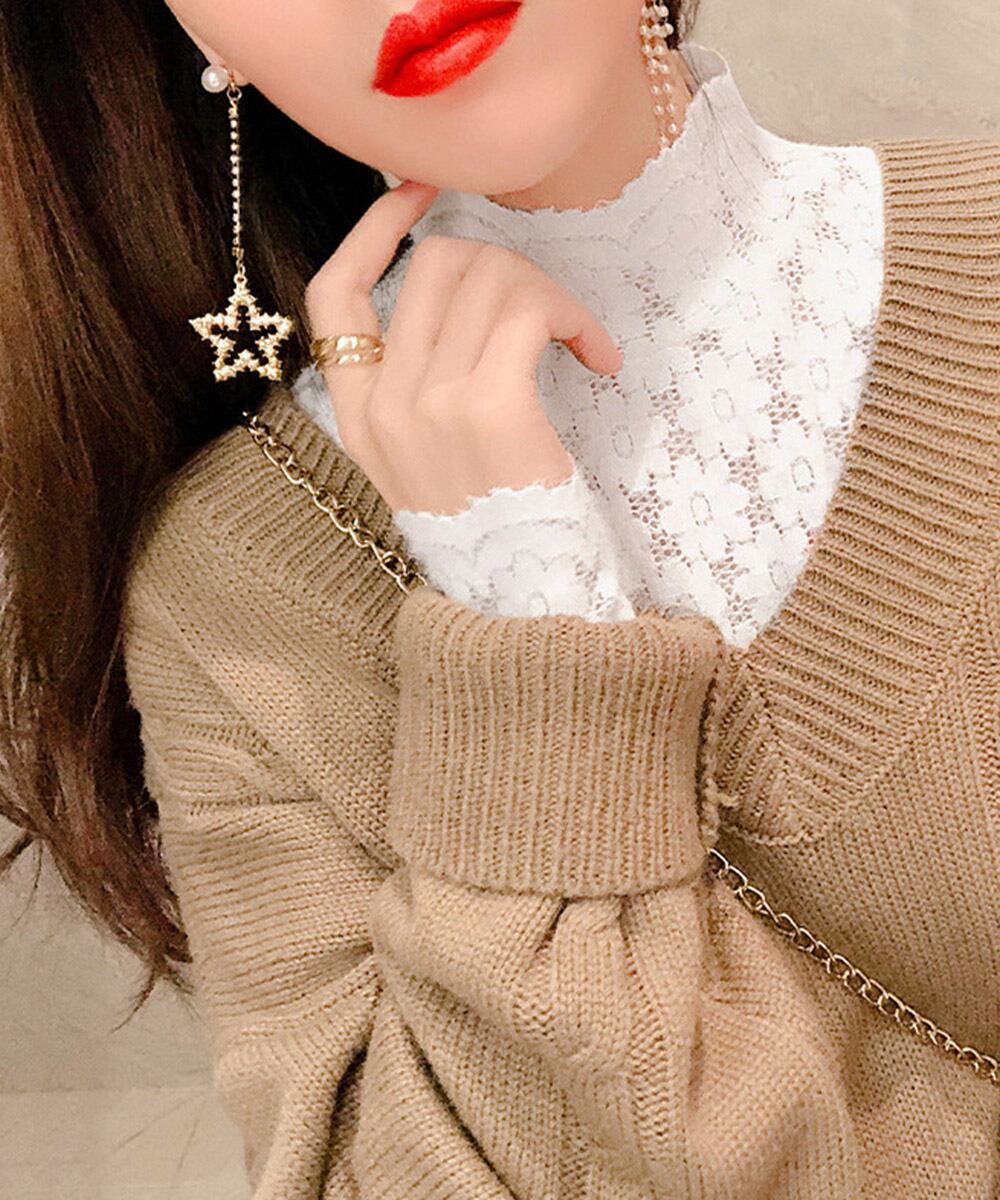 重ね着長袖インナー フェミニンブラウス セクシートップス