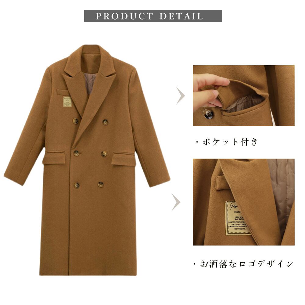 大きめの襟とダブルボタンのデザインがクラシカルな雰囲気を醸し出すオーバーサイズチェスターコートの