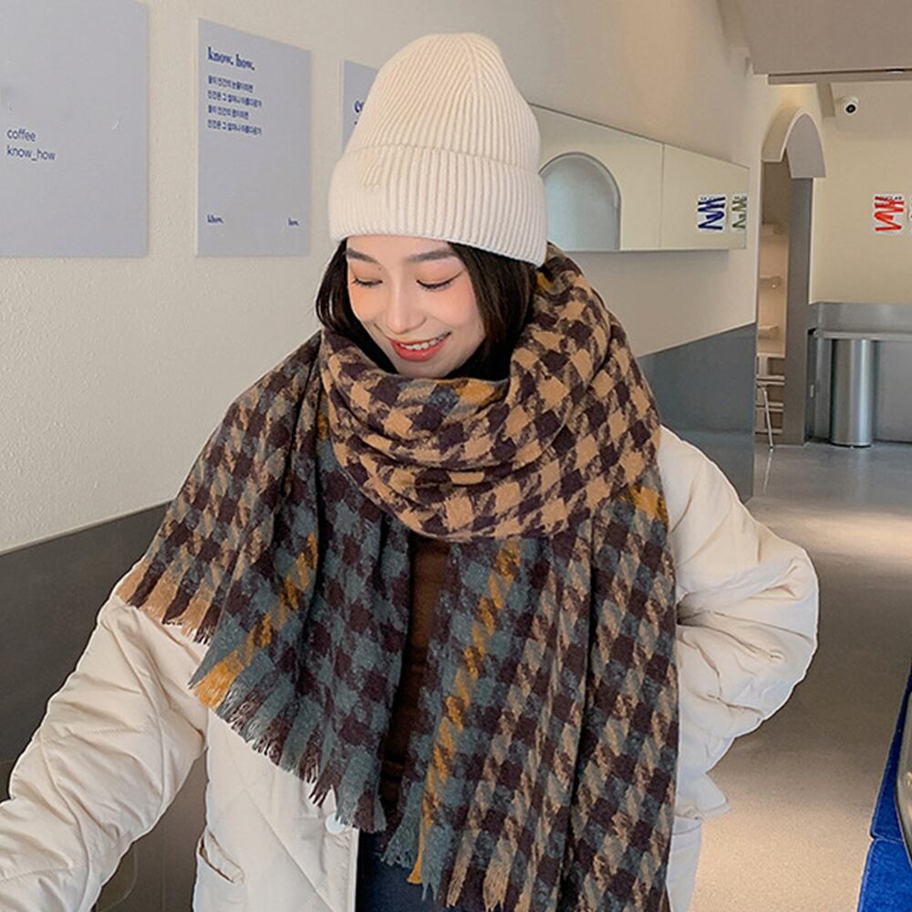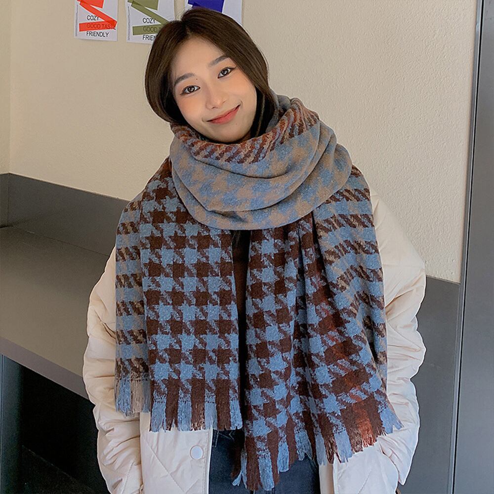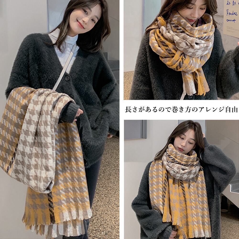 肌寒い季節に大活躍!使い勝手の良い千鳥柄大判リバーシブルマフラー