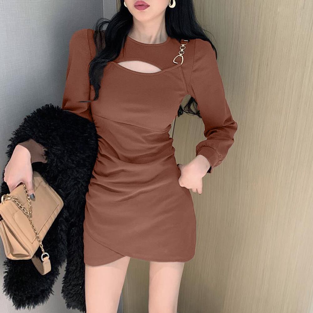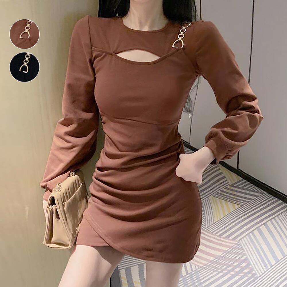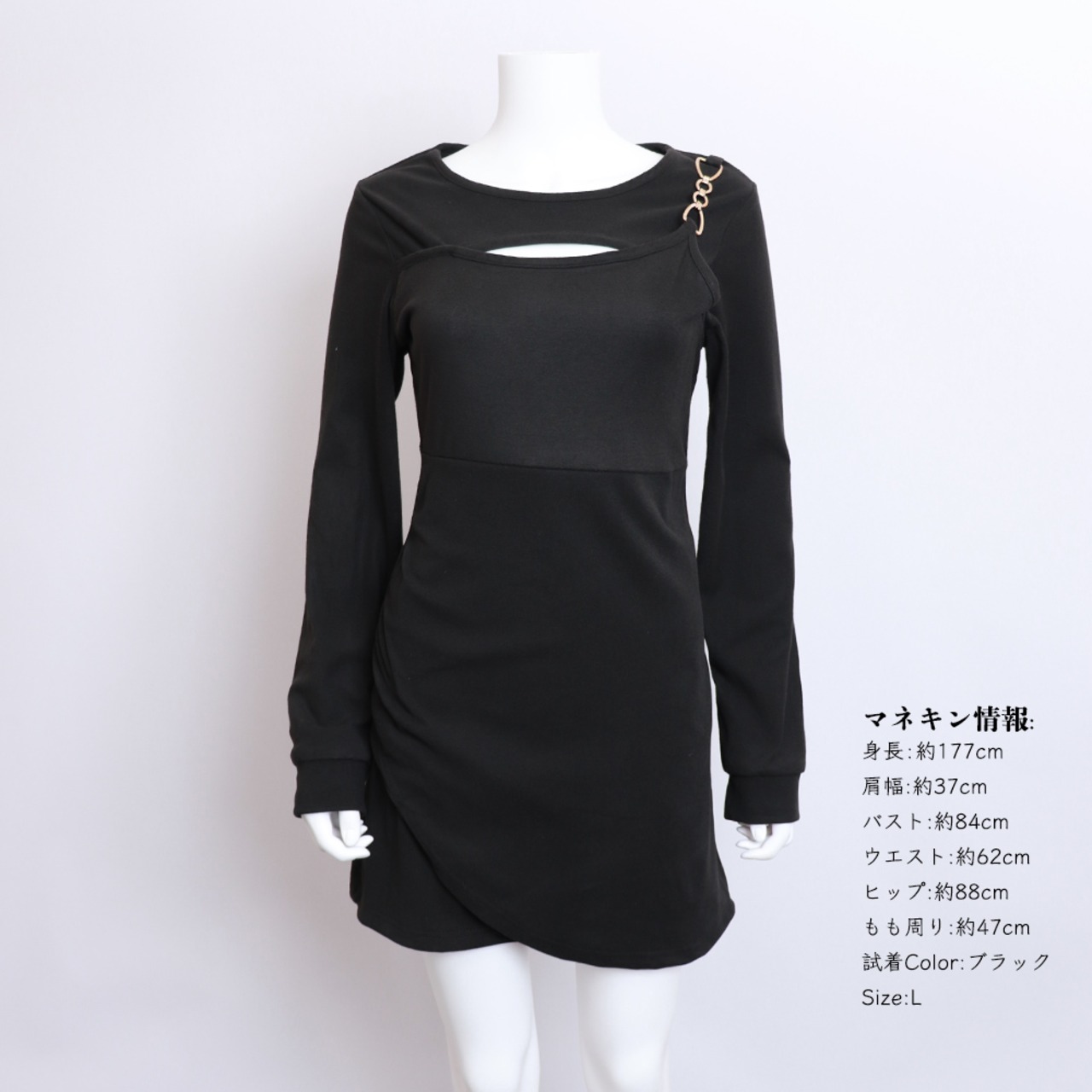 バストの間にカットアウトデザインでセクシーさもプラスされた長袖ミニワンピースです