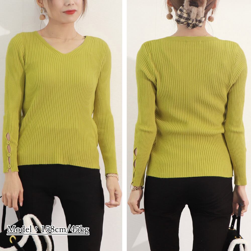 柔らかな肌触りで伸縮性の高いベーシックなVネックリブニットトップス