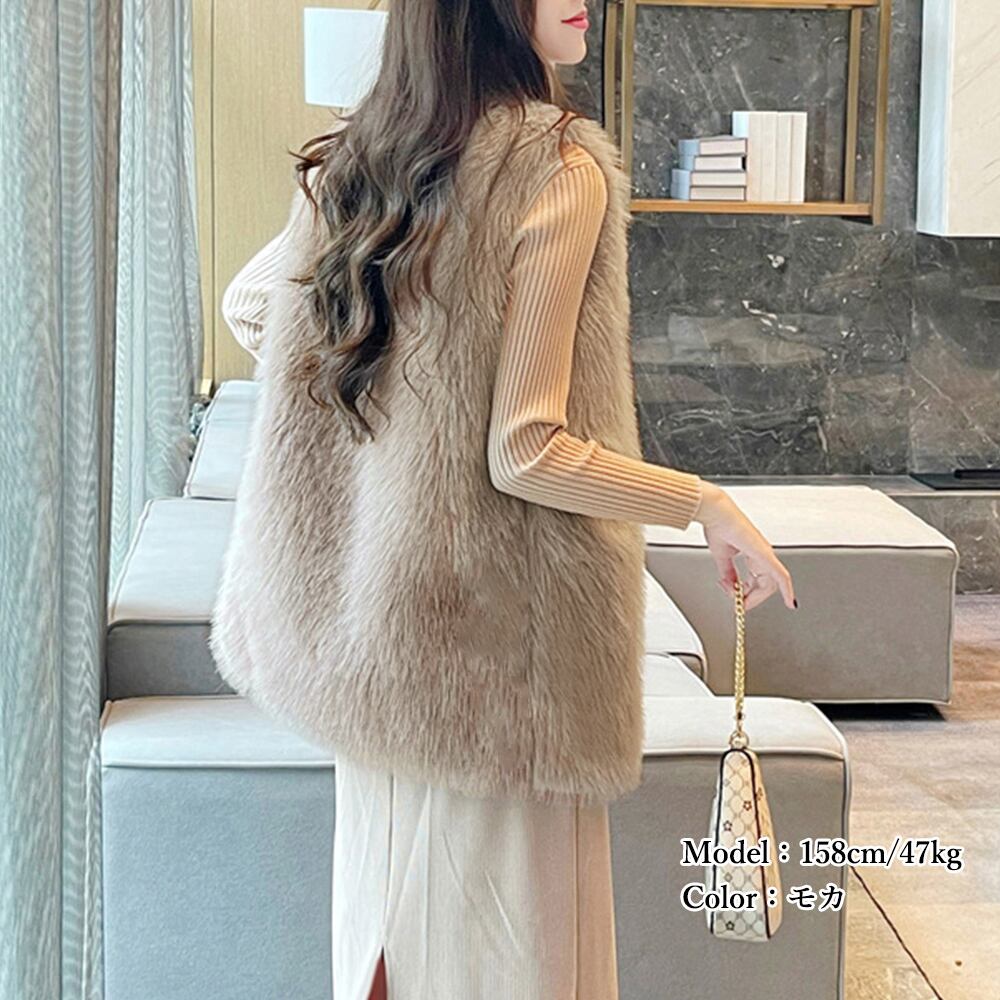 ボリューム ファーベスト 体型カバー 重ね着 ファージレ フェミニン ファージャケット ゆったり ミドル丈ふんわり着やせ