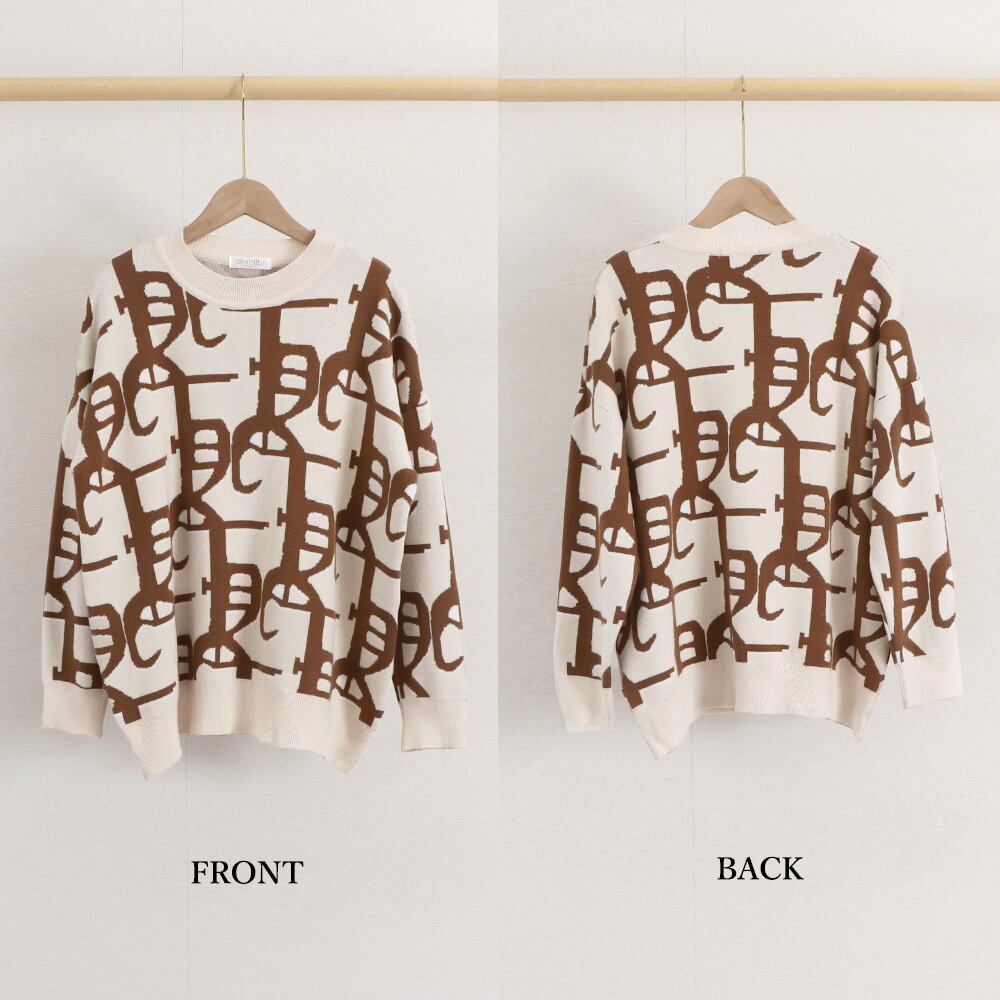 モノグラム柄の秋冬らしい配色がお洒落な愛されニットトップス