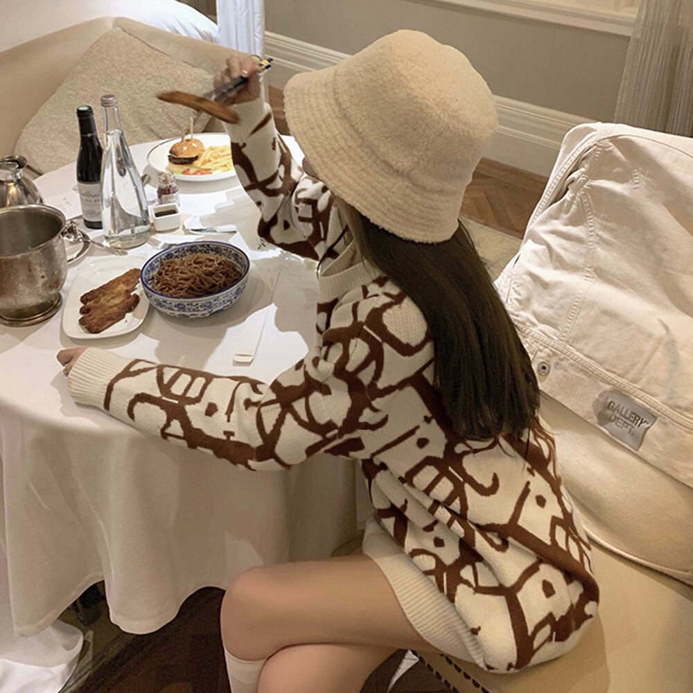 ジャガード柄ニットトップス 長袖韓国秋冬