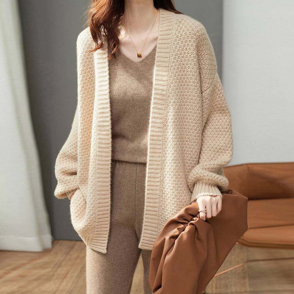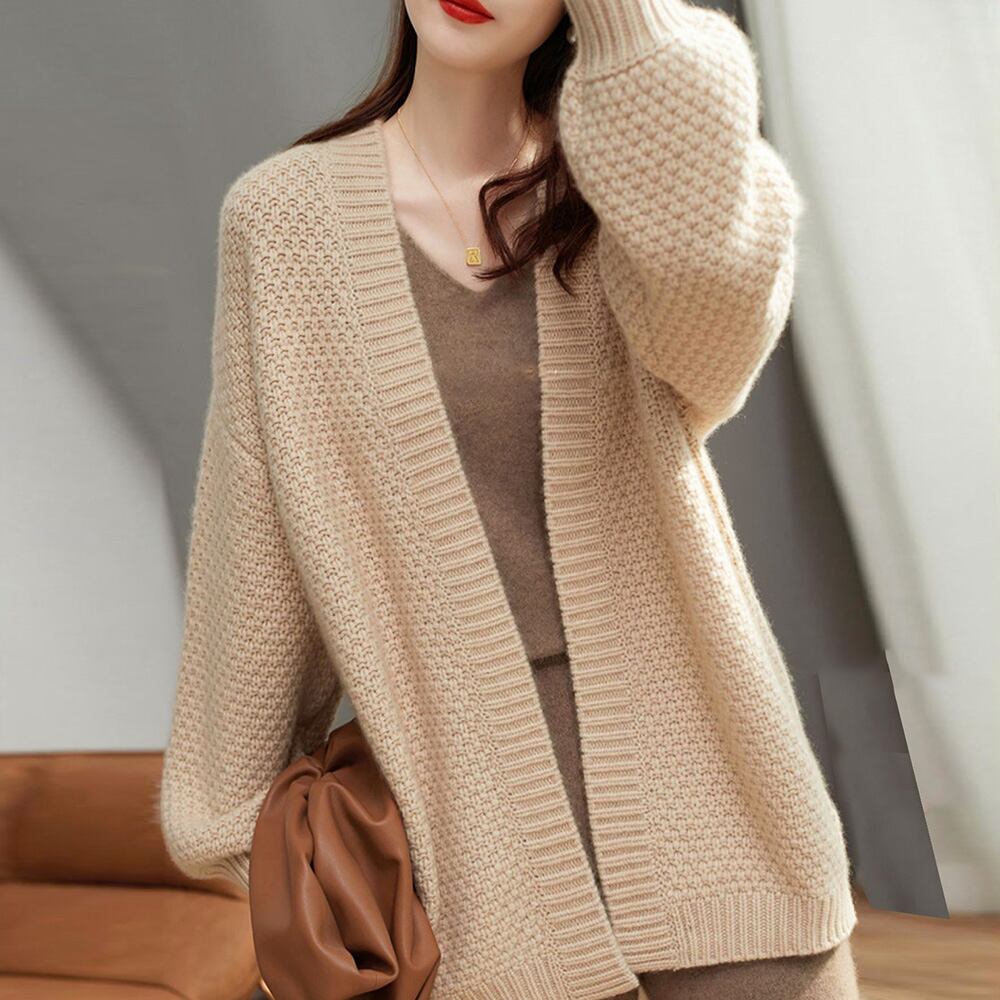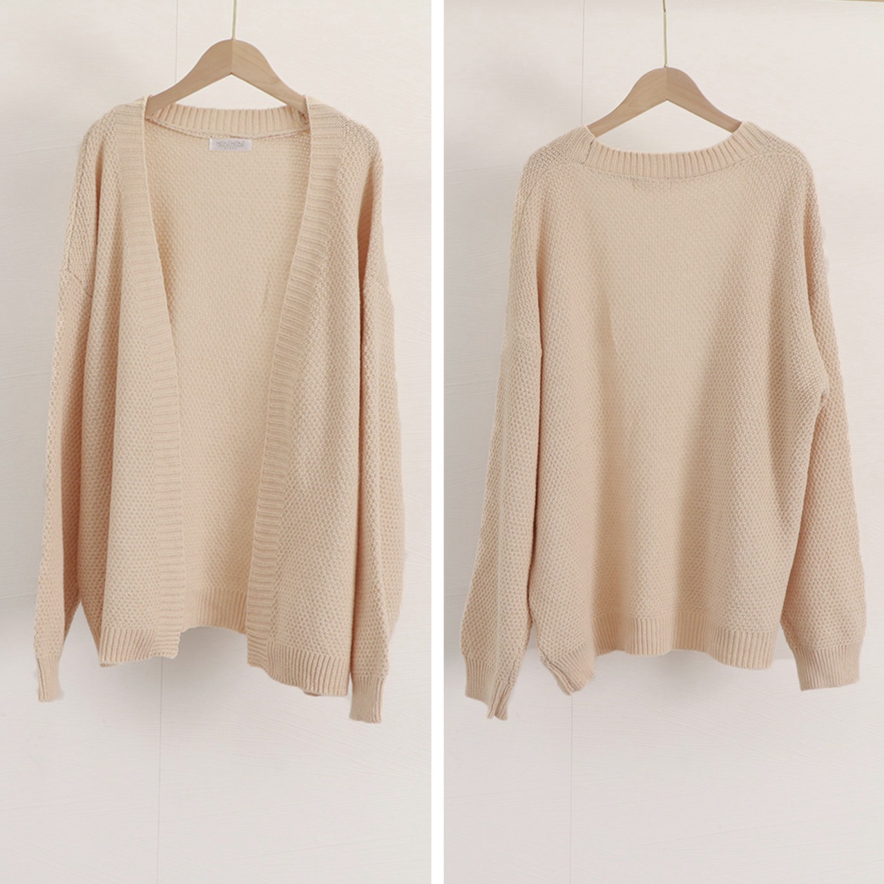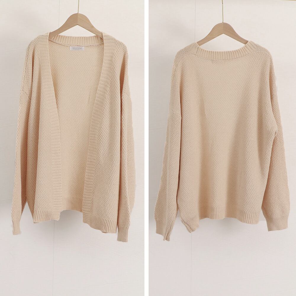韓国風 ゆるニットトップス ドロップショルダー ニットコーディガン 無地ニットアウター カジュアルトッパーカーディガン
