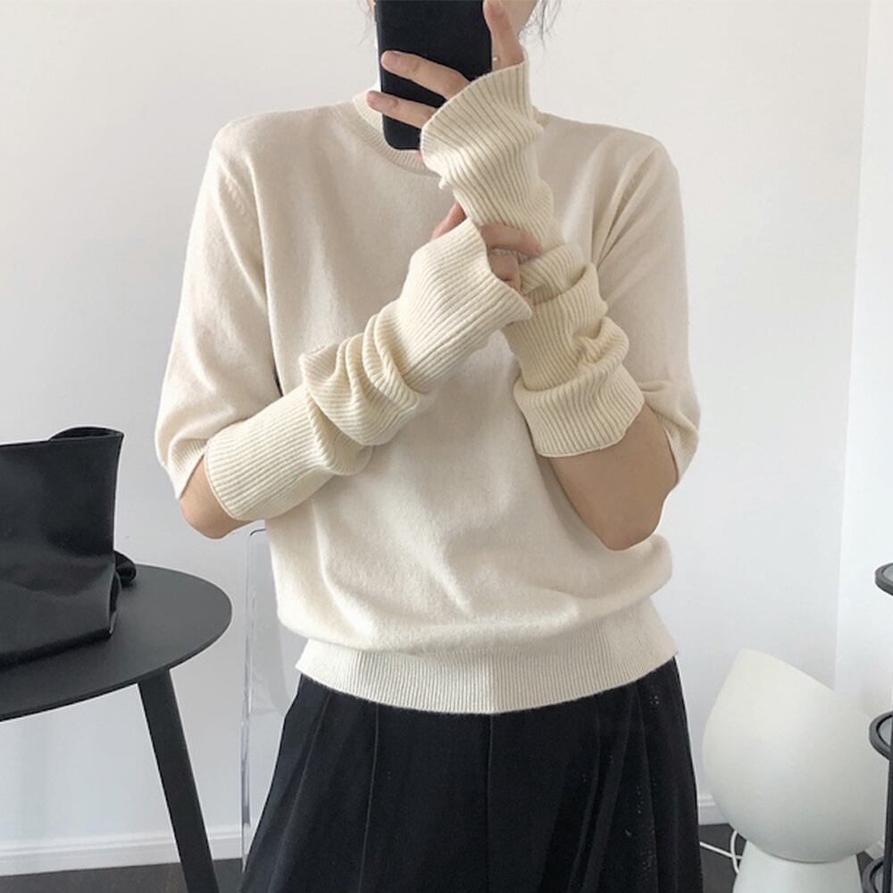 シンプルなリブデザインで腕や手指が細長く見え