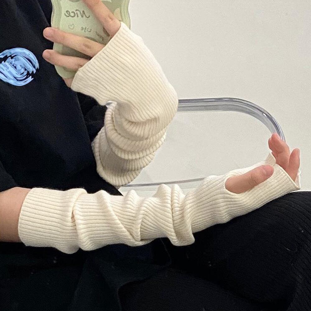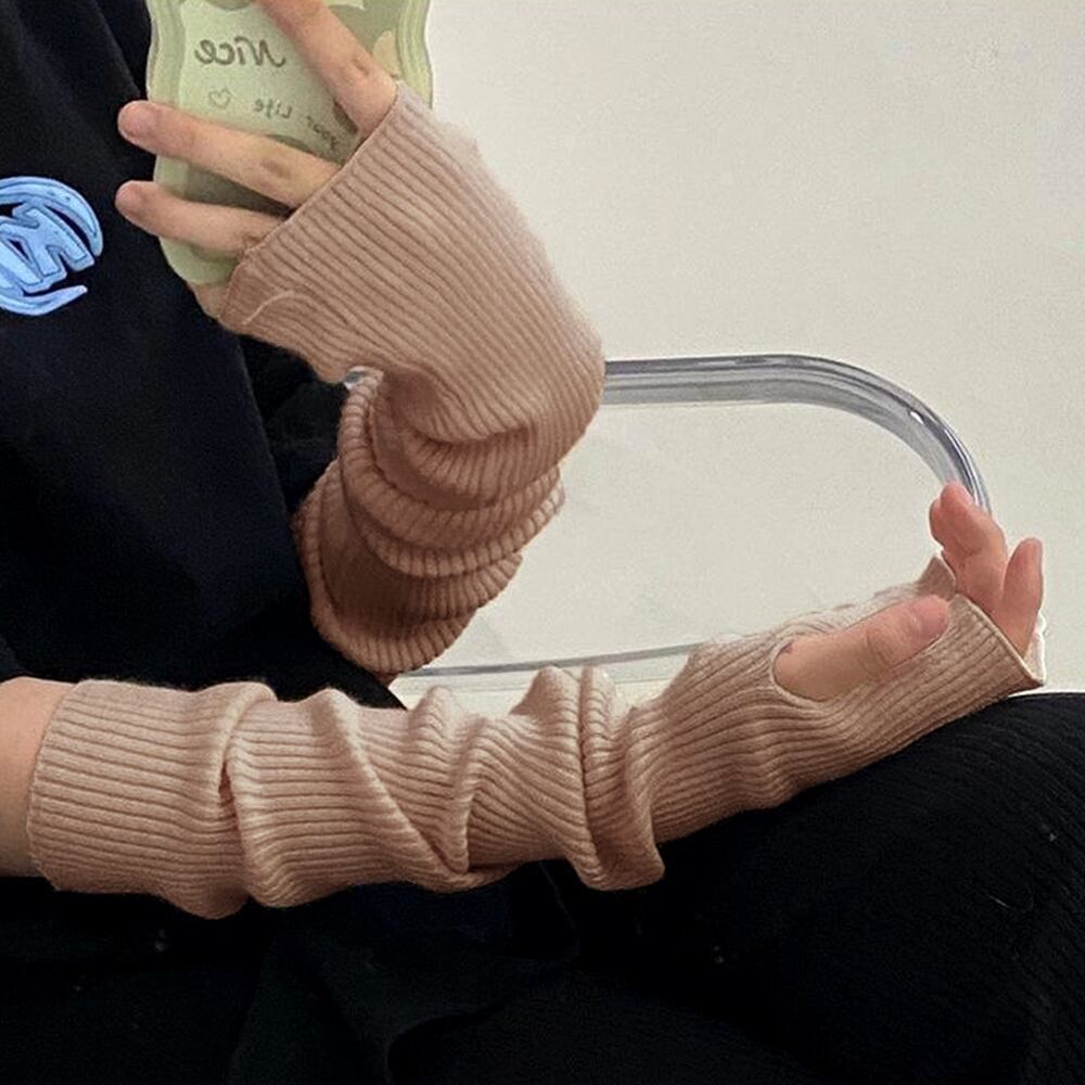 韓国 親指穴付き リブニットアームウォーマー レディース 冷え対策 ハンドウォーマー 防寒 無地 ロング手袋おしゃれ5色