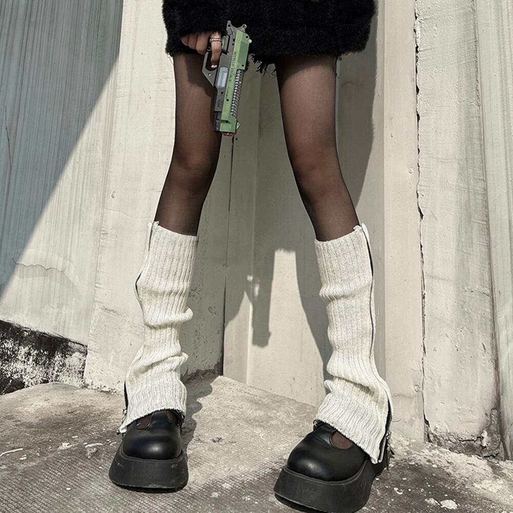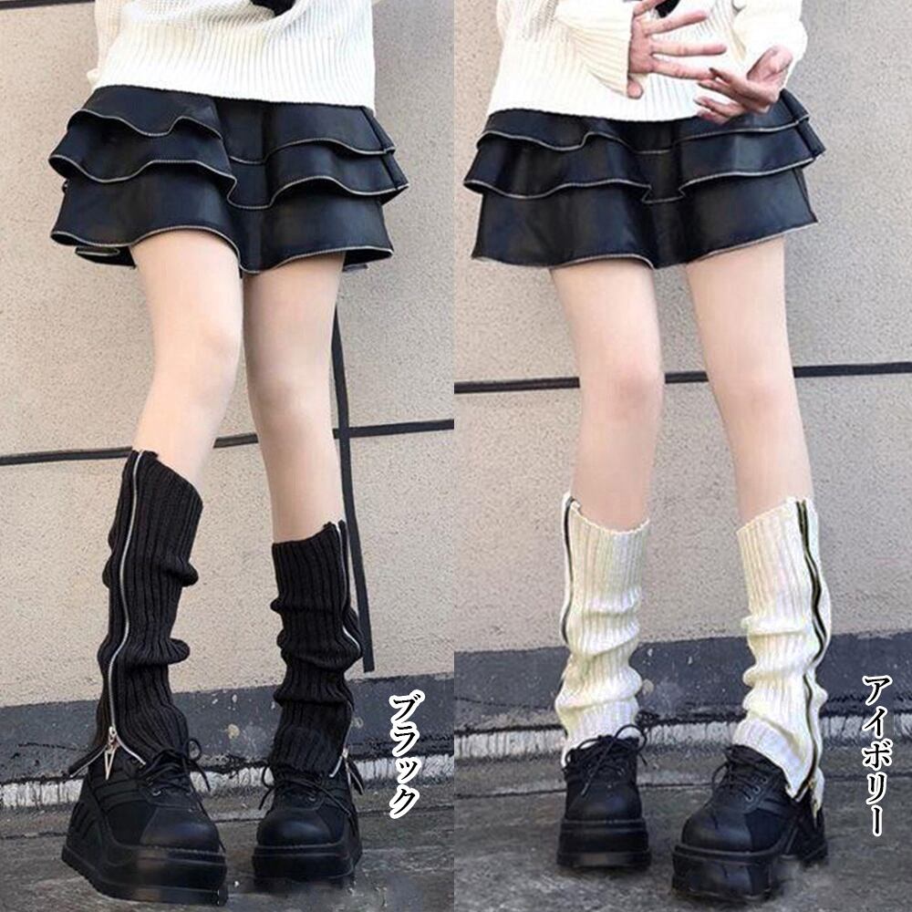 ニットレッグウォーマー ジップつき韓国風