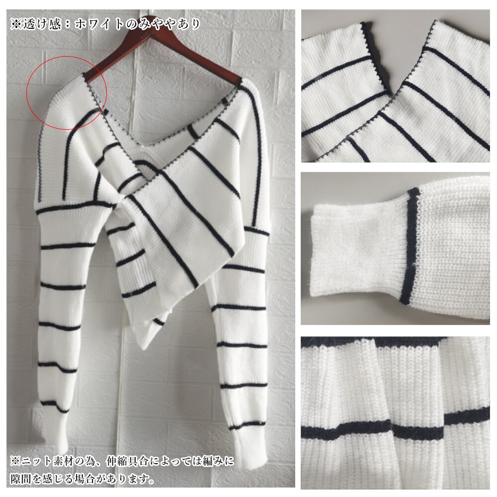レディース ボーダー柄 ニットセンター 大人カジュアル ショート丈 ニットウエア 肩だし きれいめ ニットソー Vネック