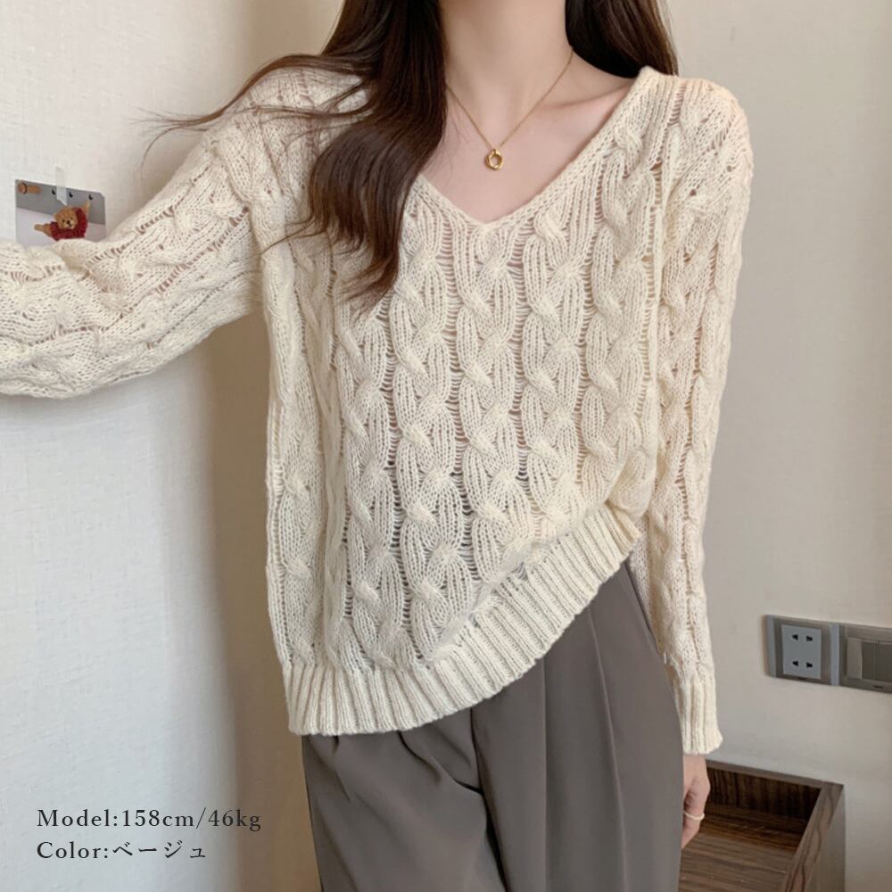 ざっくり編みが抜け感をプラスするケーブルニットトップス