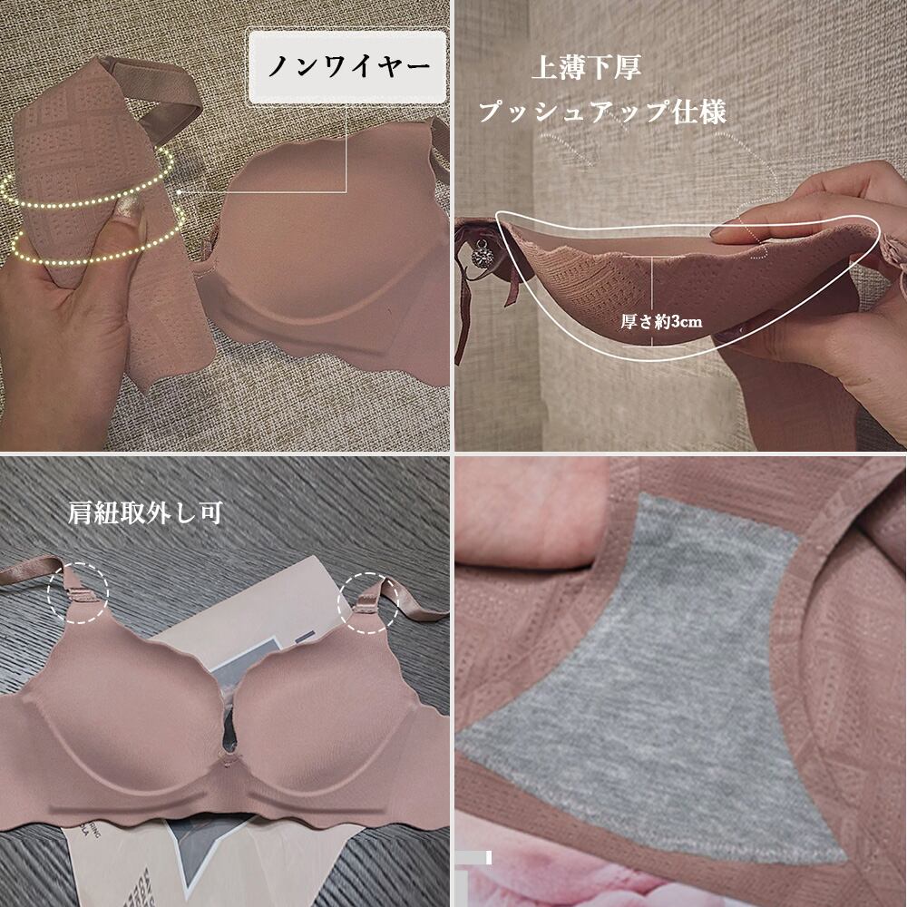 レディース セクシー ランジェリーセット プッシュアップ フロントリボン ナイトブラ 脇スッキリ シームレス 2点セット