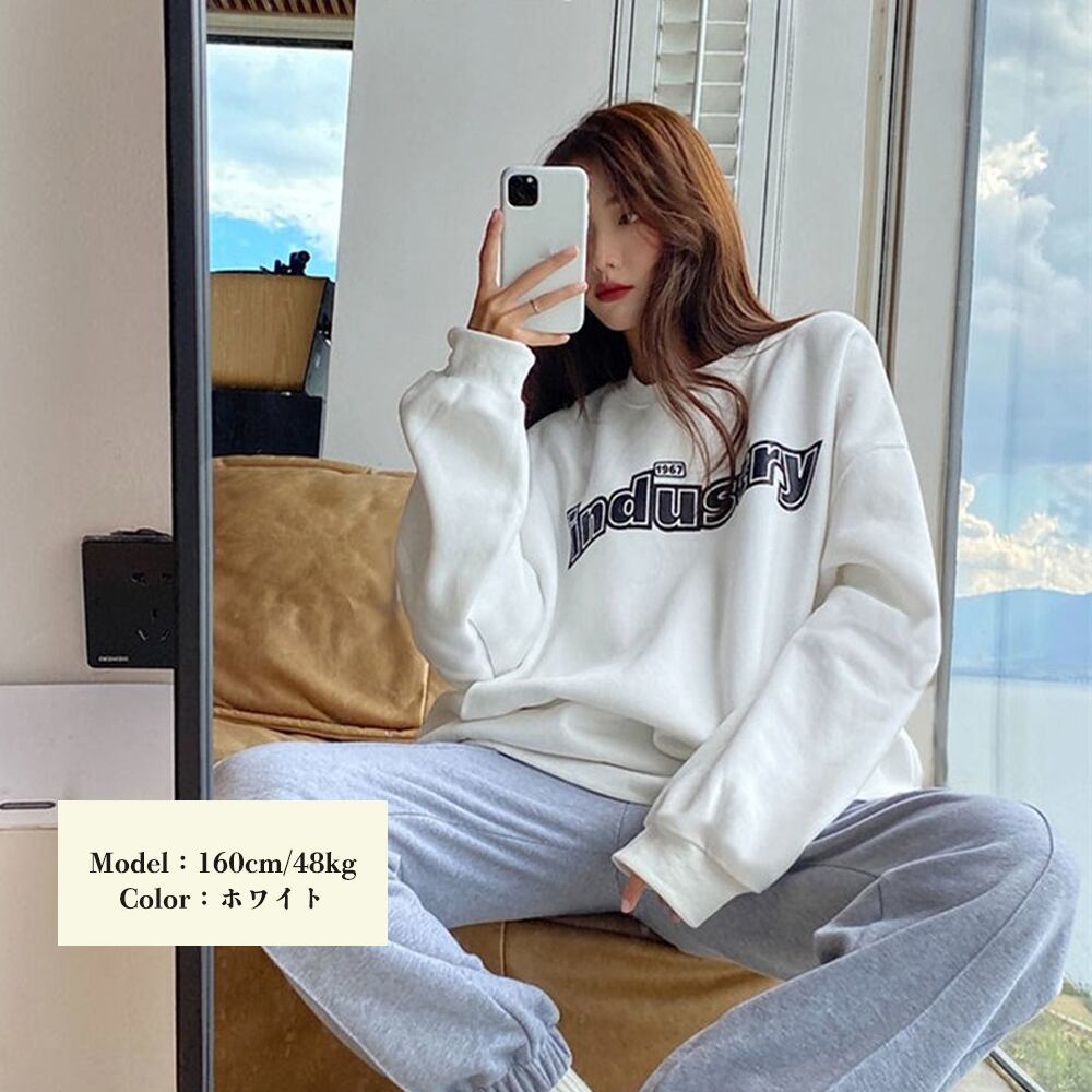 韓国 英字ロゴ 長袖トップス あったか プルオーバー 裏フリース 秋冬服 カジュアル おしゃれ 着やせ服