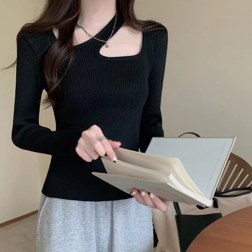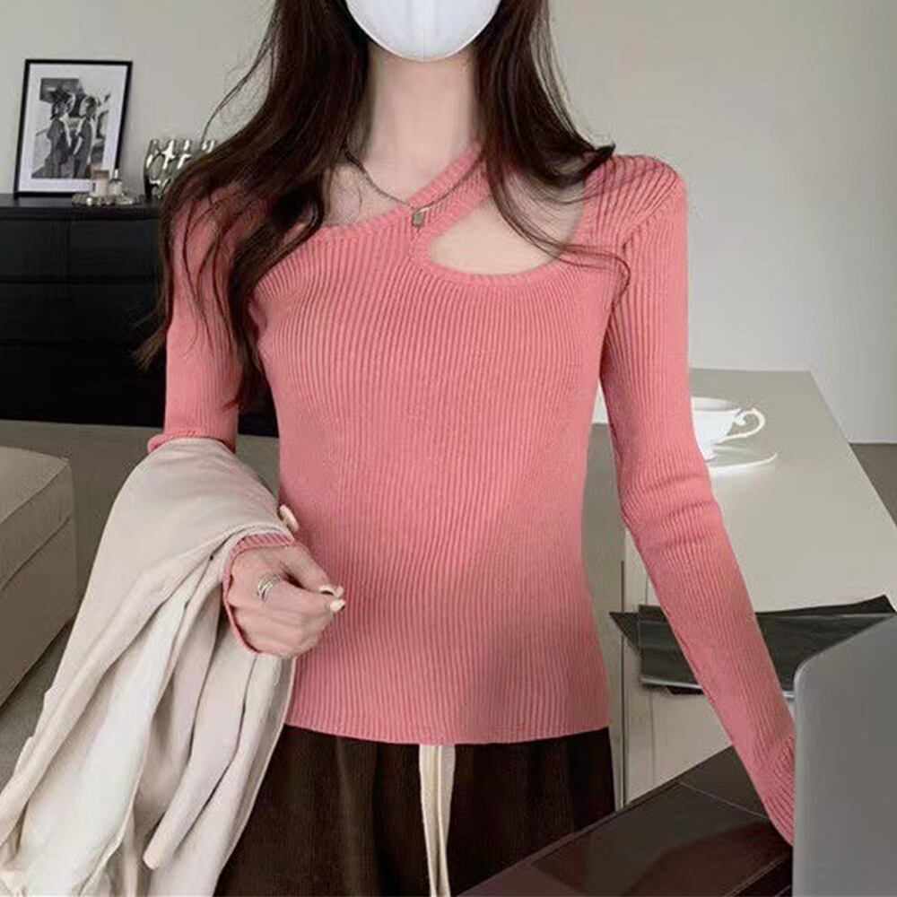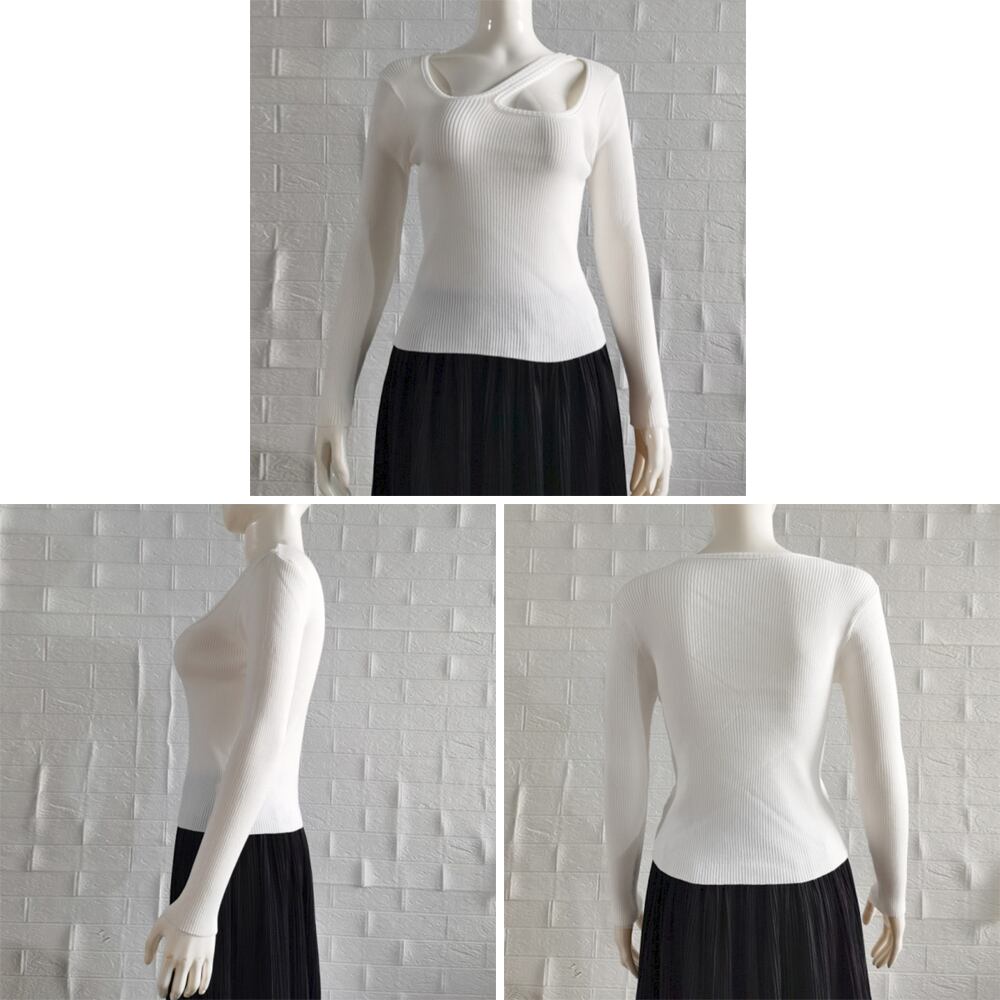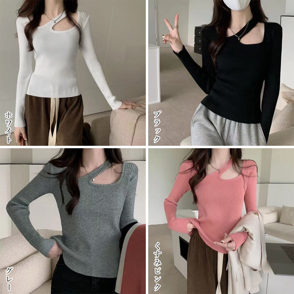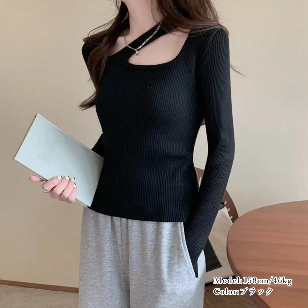 カットアウト ニットプルオーバー タイトニット 普段着ニットセーター カジュアルニットウエア  無地ニットソー