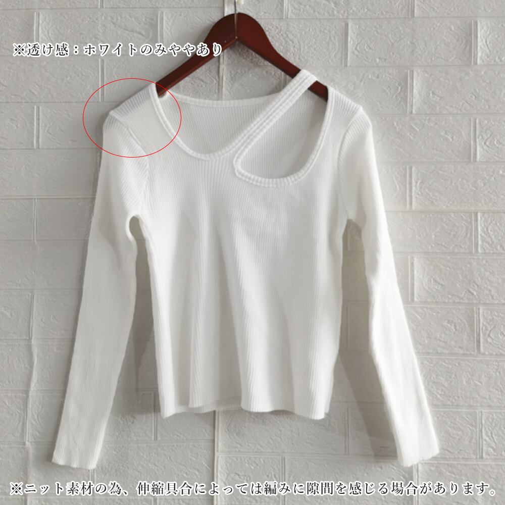 無地ニットインナー 重ね着 リブニット 肌見せ トップス