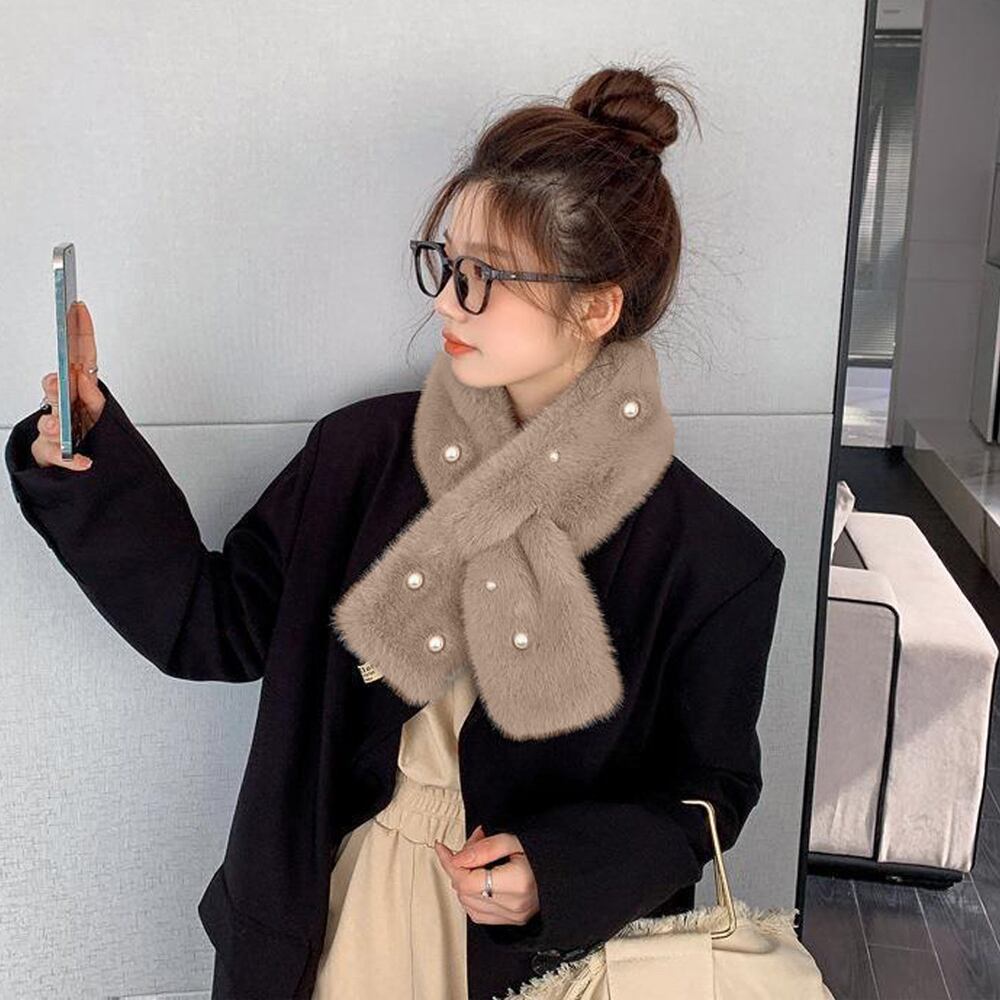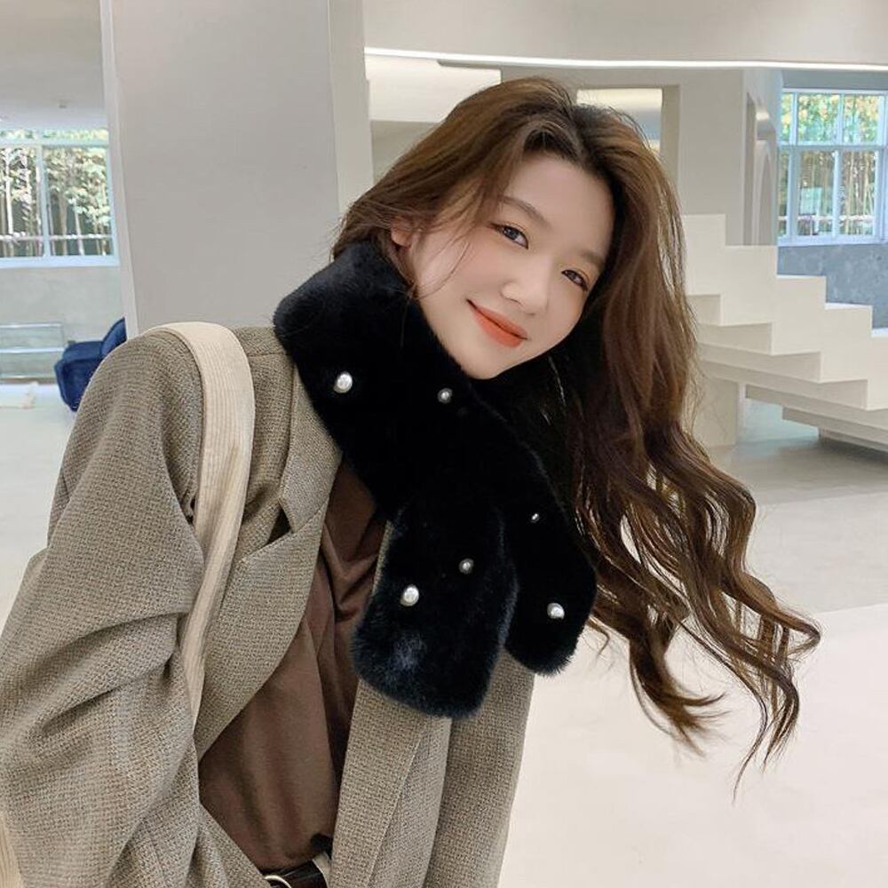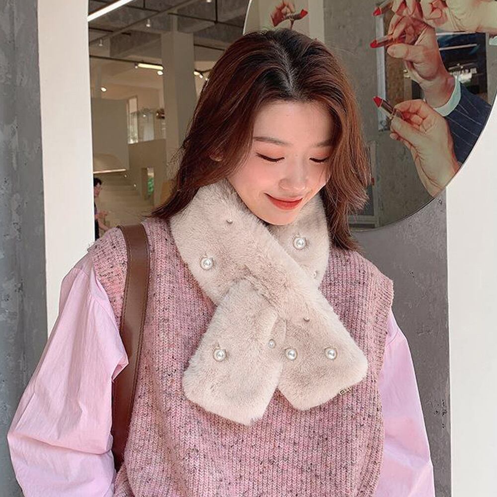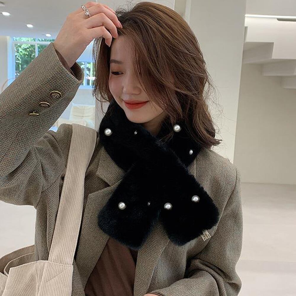 レディース 韓国 パール付ティペット シンプル フェミニン 巻き物 通勤通学 オフィス おやれ あったか 可愛い 上品