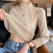 韓国風 タートルネックセーター 暖かい ニットプルオーバー シンプル プチハイネック厚手ニット 防寒 20代30代40代
