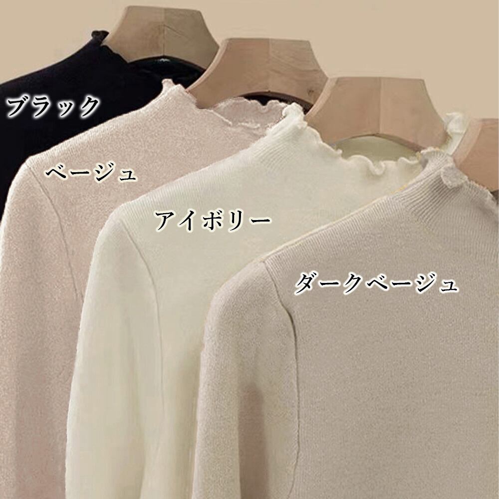 オフィスカジュアル 大人ニットインナー フリルネックニット