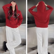 フード付き ニットカーディガン 秋冬服