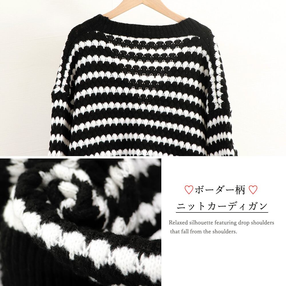 ラフに羽織るだけでこなれ感を引き出すボーダー柄ニットカーディガン