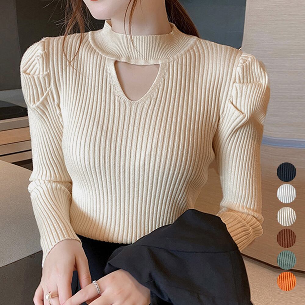 レディース 韓国 フロントオープン ニットプルオーバー 胸開きニットソー セクシー 着やせニットインナー おしゃれ 7色