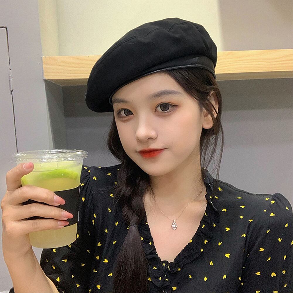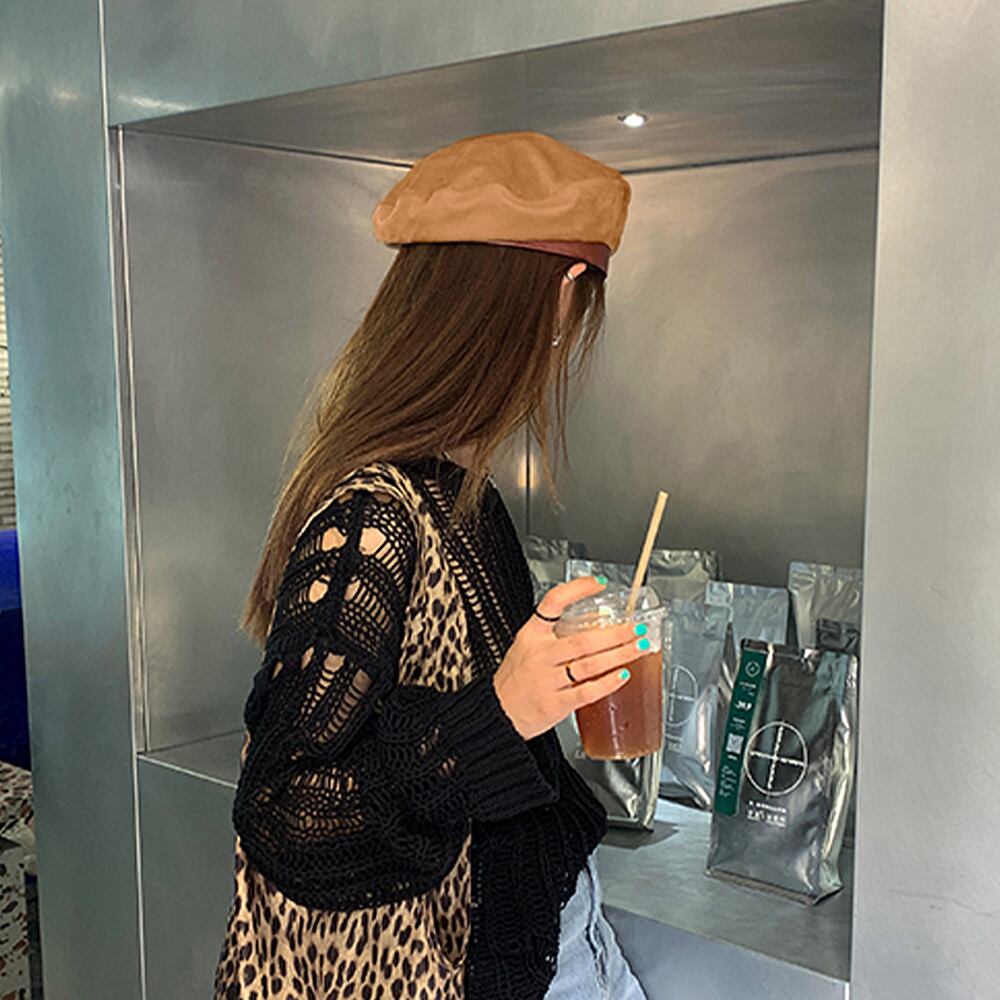 韓国風 バスクベレー帽 PUレザー スエード調 無地 シンプル おしゃれ カジュアル 大人 トレンド感 ぼうし