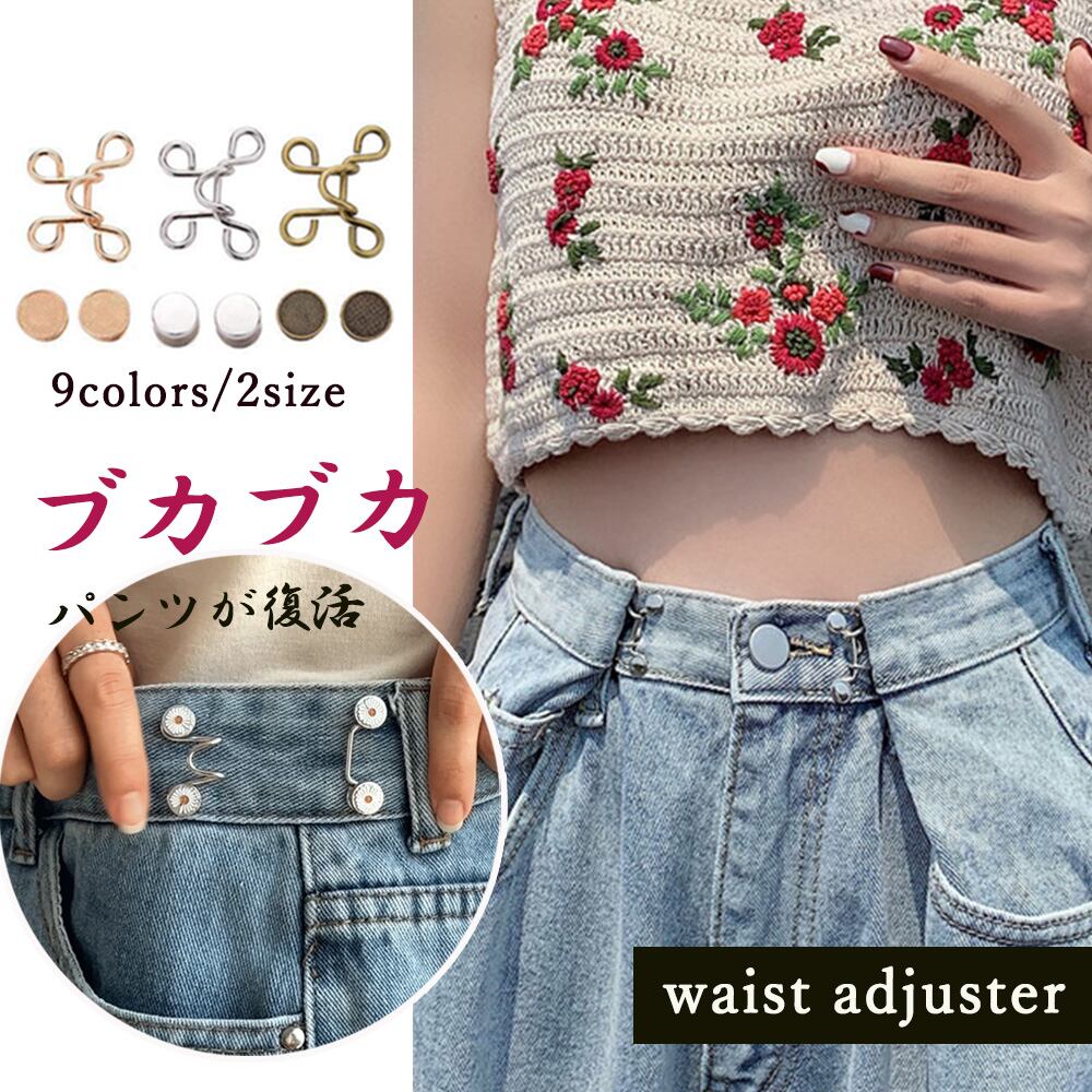 ウエスト調整用バックル レディース 大人メタルボタン 便利 流行 取り付け簡単 セルフサイズお直し ベルト不要 服飾雑貨