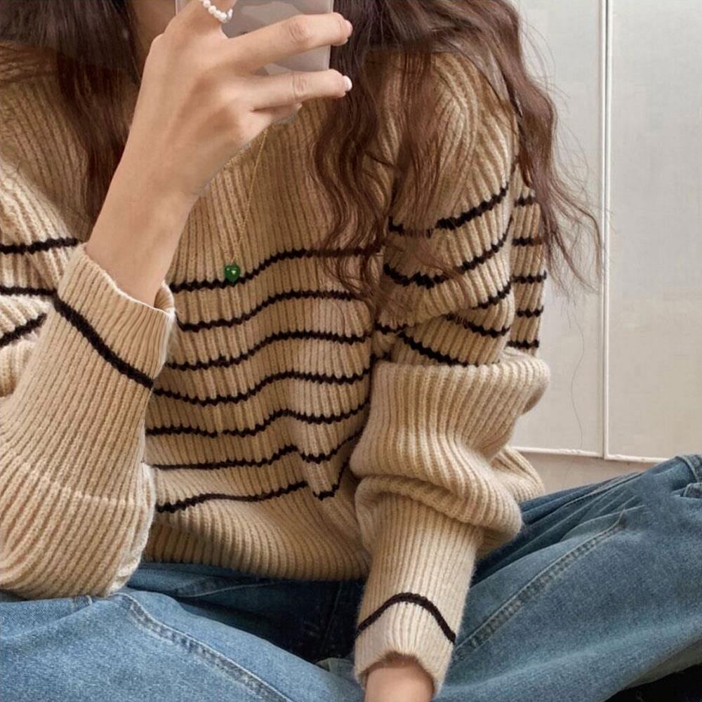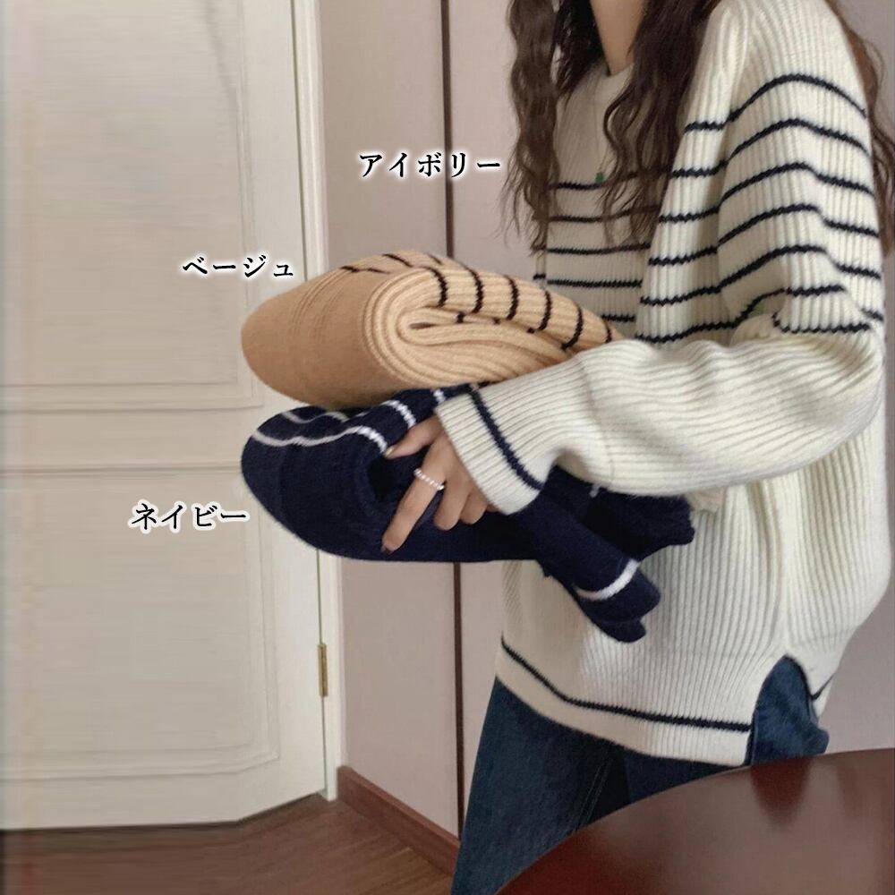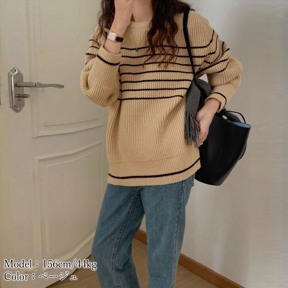 レトロな配色が目を惹くボーダー柄ニットプルオーバー