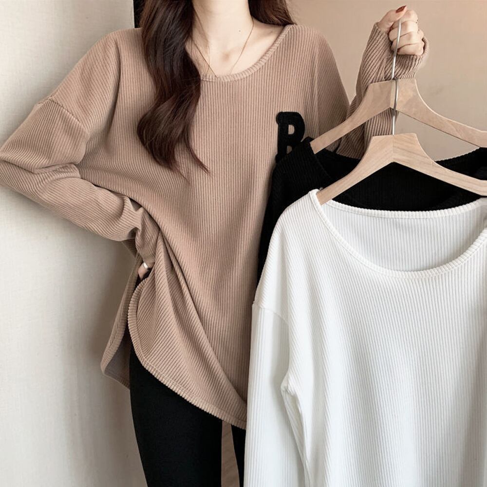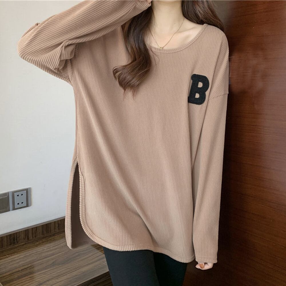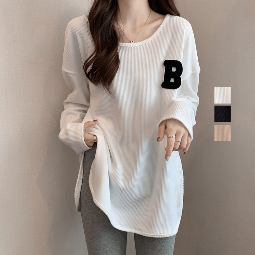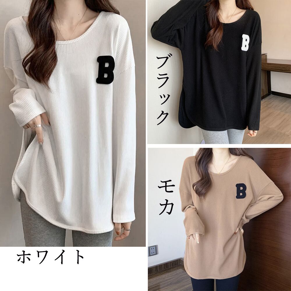 春秋冬 トップス 前後差 長袖 ロングTシャツ ラウンドネック プルオーバー ゆったり 体型カバー 通勤通学 お洒落