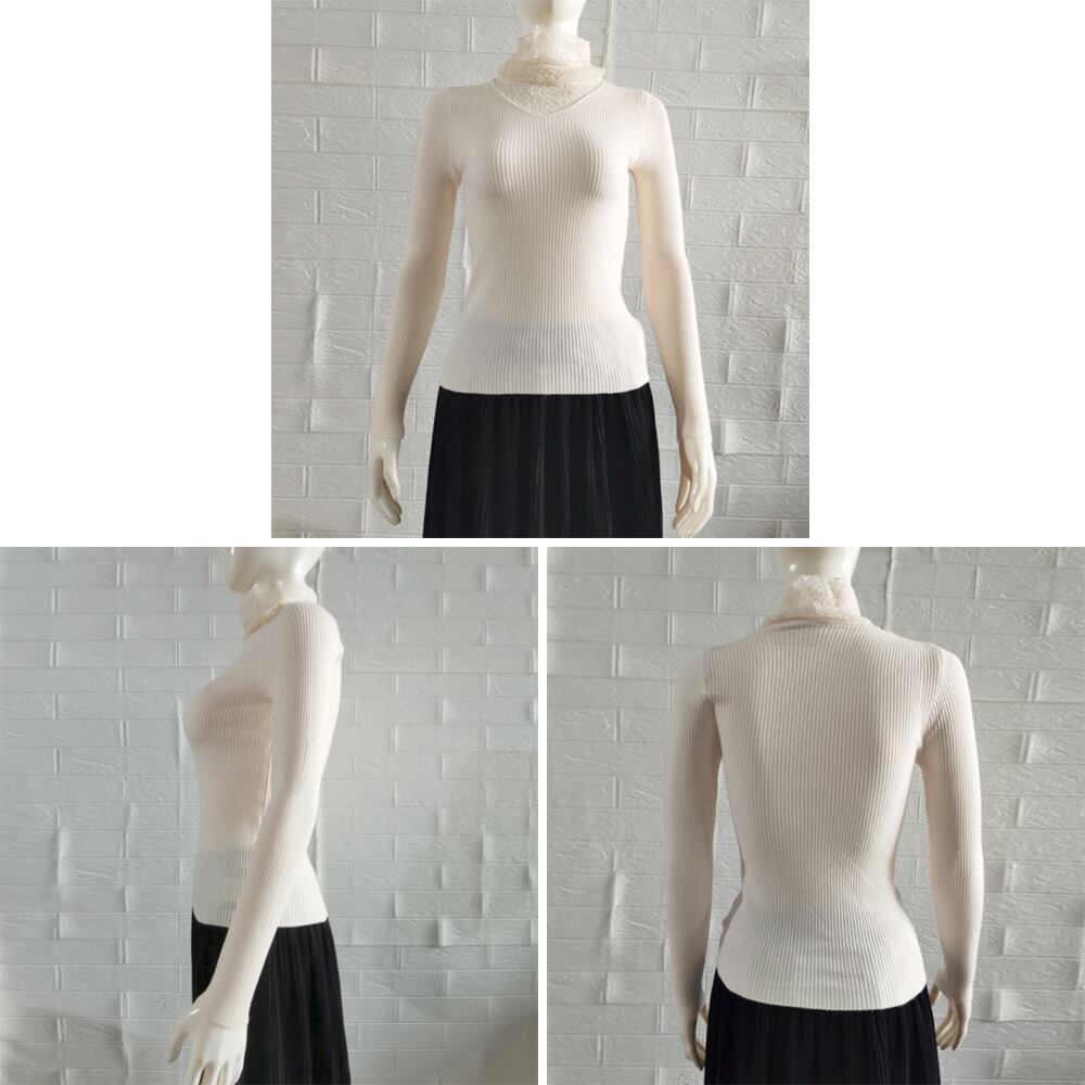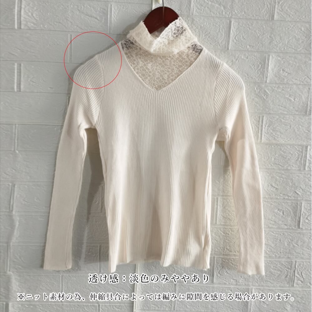 レースがスタイリングを大人可愛いらしく演出するタートルネックニットトップス
