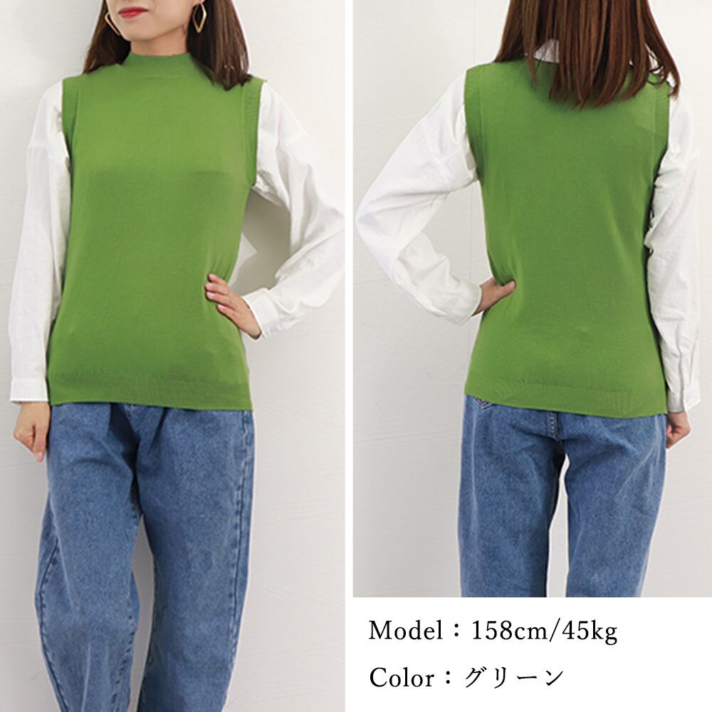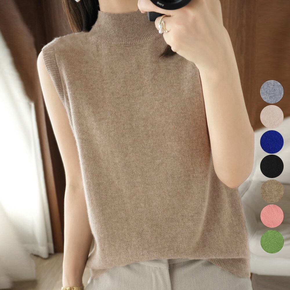 プチハイネックニット レディース ノースリーブ ニットトップス オフィスカジュアル 華奢見え インナーニットソー 春秋夏