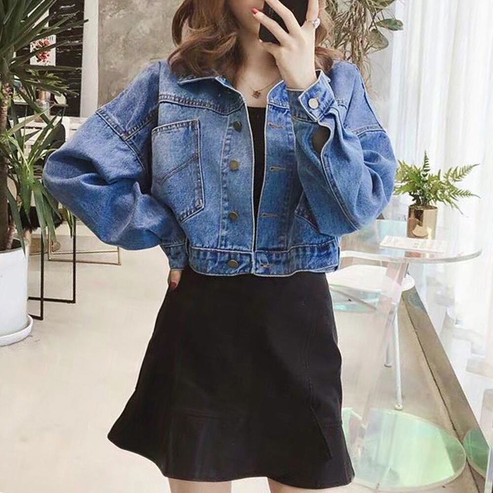 レディース カジュアル クロップド丈デニムコート 着やせGジャン 韓国風長袖 デニムブルゾン ジャンパー 上着 おしゃれ
