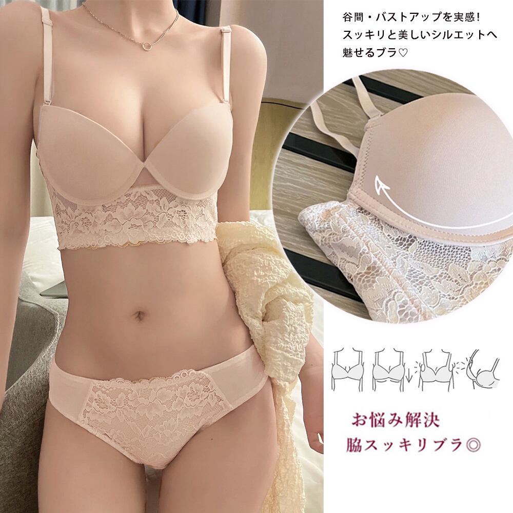 大人可愛い ワイヤー付きブラジャー ショーツ 上下セット 谷間 盛れる ブラセットアップ 脇スッキリ 韓国風 魅惑下着