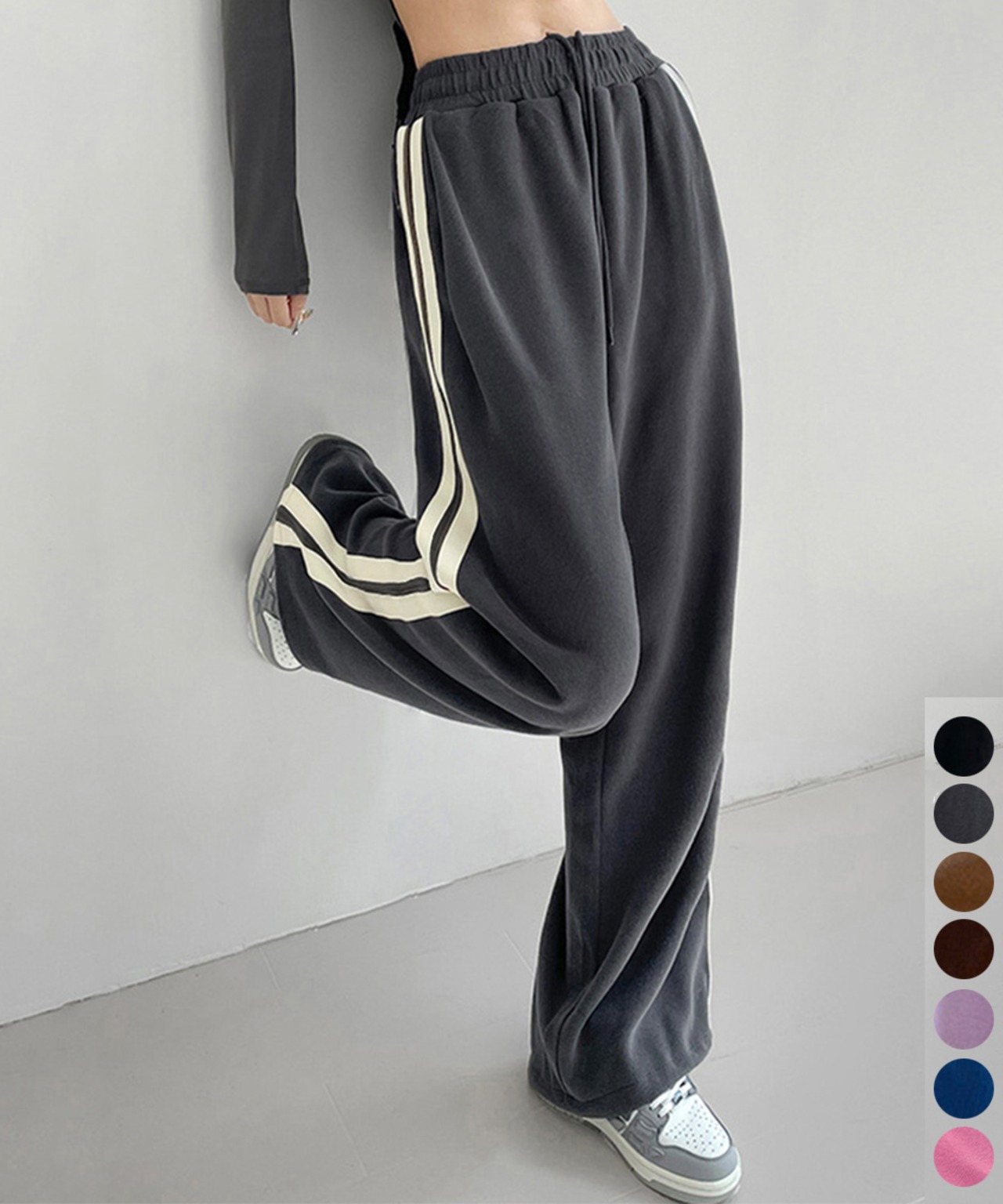 サイドにラインが入ったゆったりシルエットのスウェットパンツ。