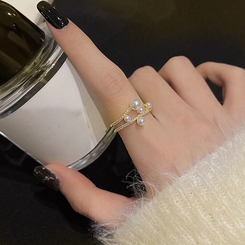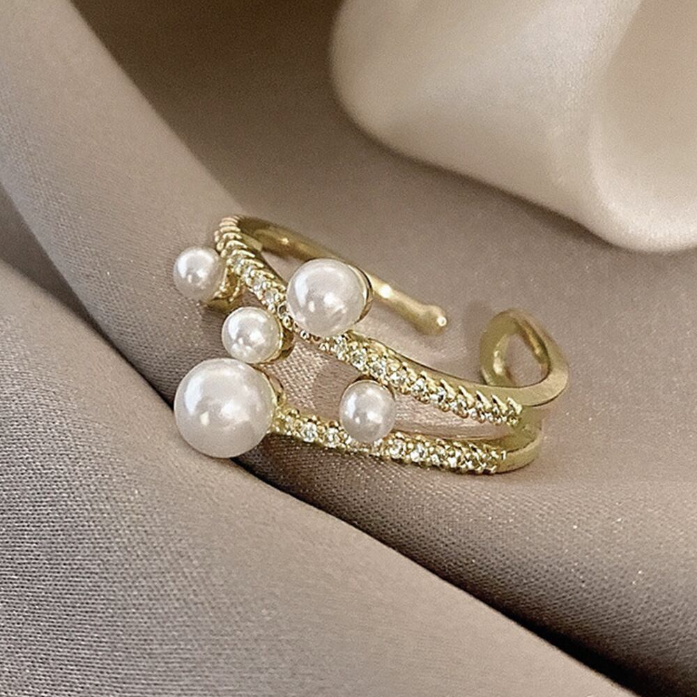 ゴールドにフェイクパール&ラインストーンがきらめくオープンリング