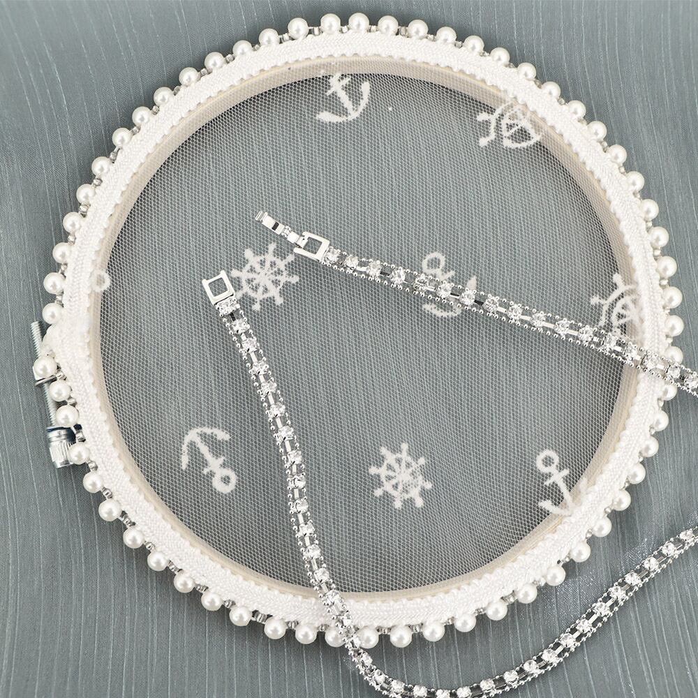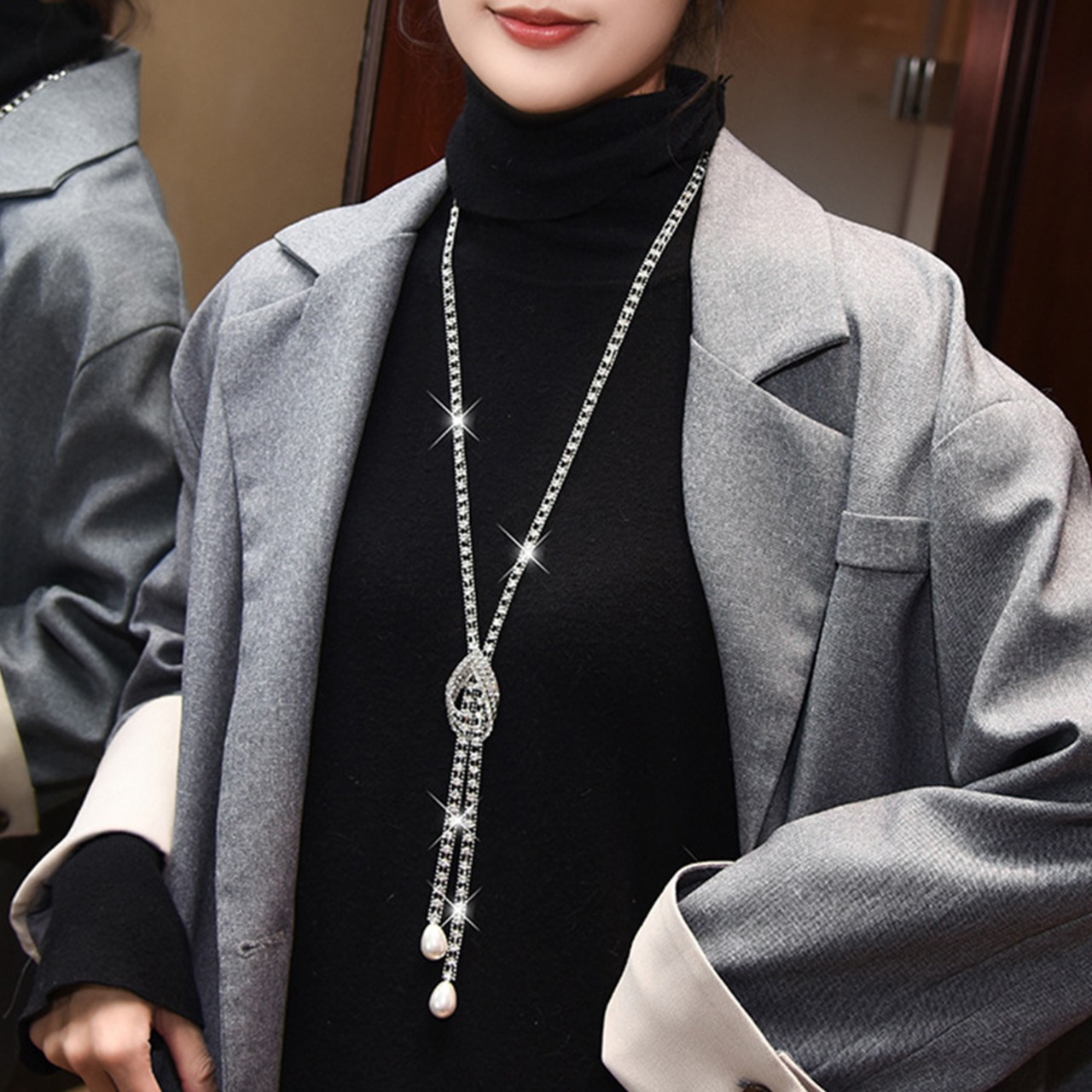 キラキラのラインストーンをぎっしり埋め込んだモチーフが目を引く、とてもエレガントなロングネックレス
