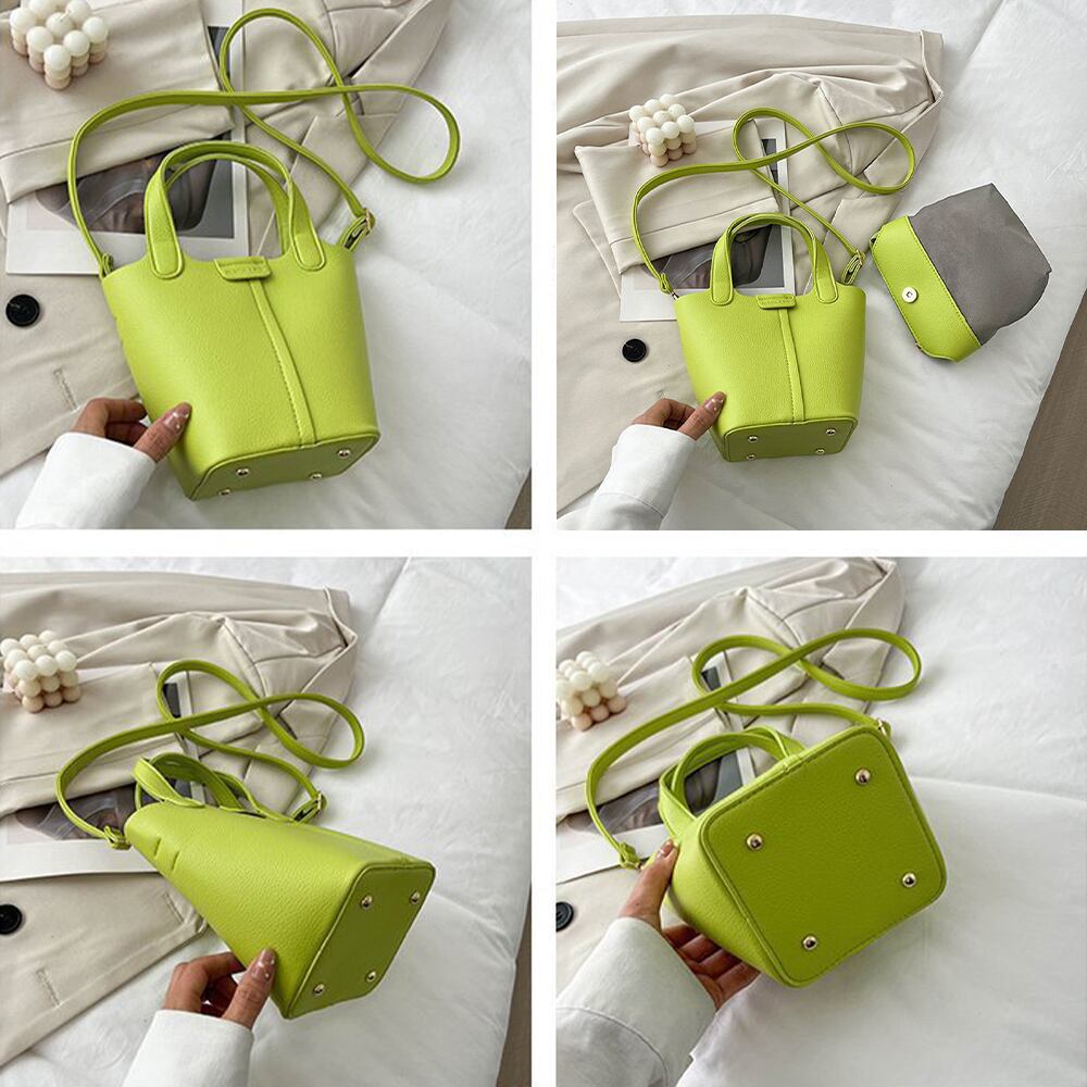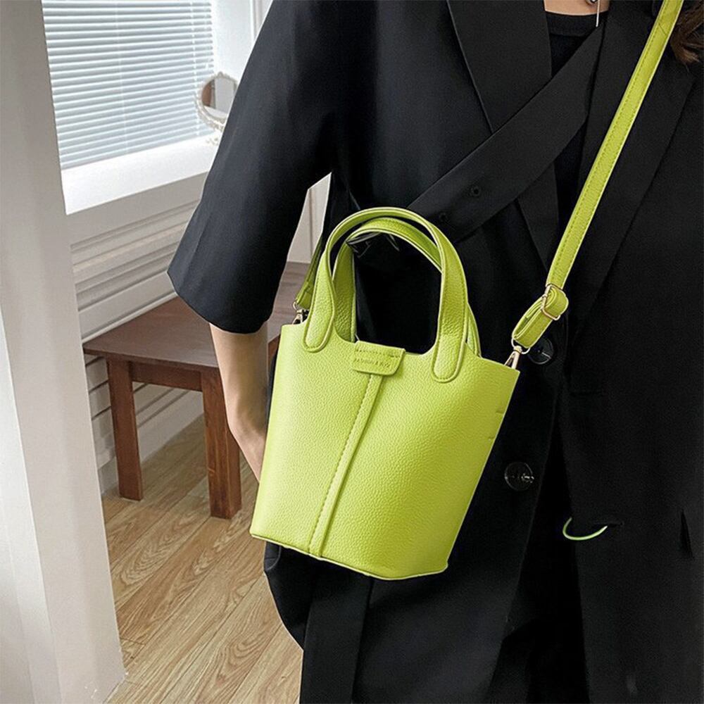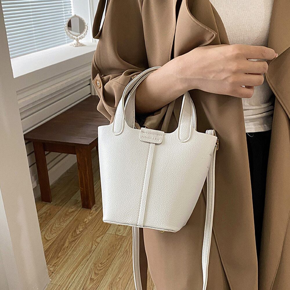 小さめで持ち歩きやすいバケツ型PUレザーハンドバッグ