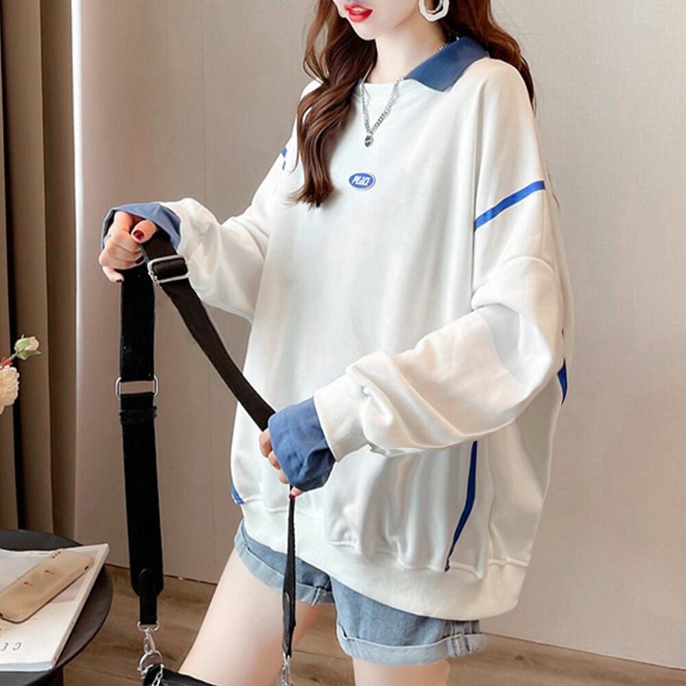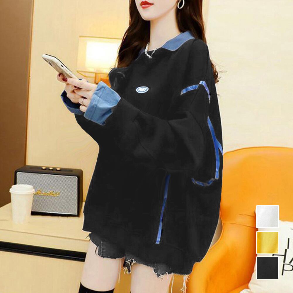 ロングTシャツ配色 ルーズトレーナー春 ライントレーナー秋