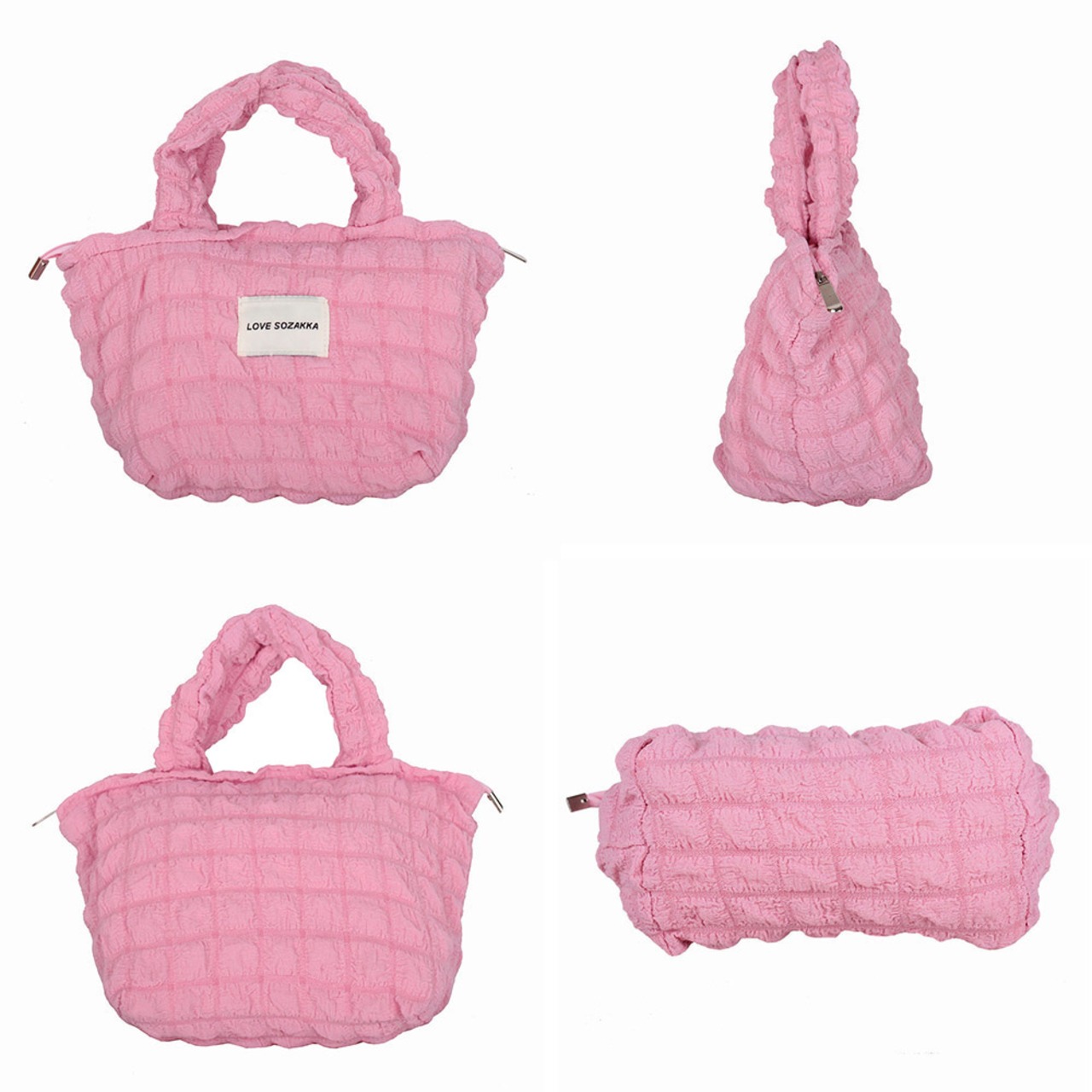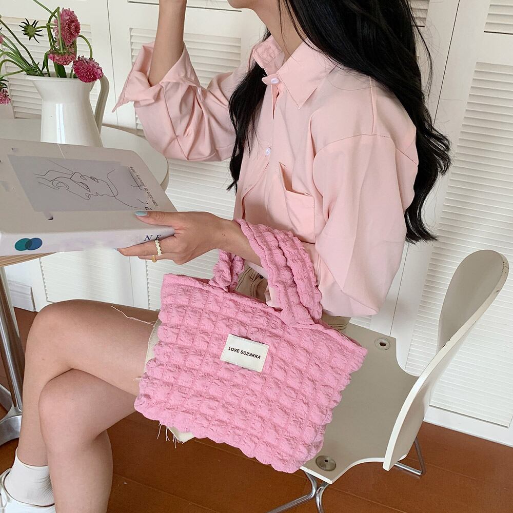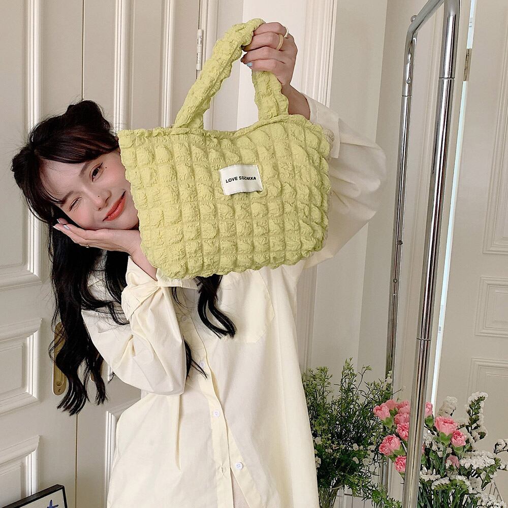 レディース 可愛い 英字ロゴ キルティング ハンドバッグ ぽこぽこ 韓国風 手提げかばん おしゃれ サブバッグ お出かけ