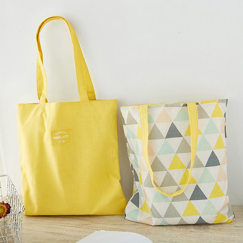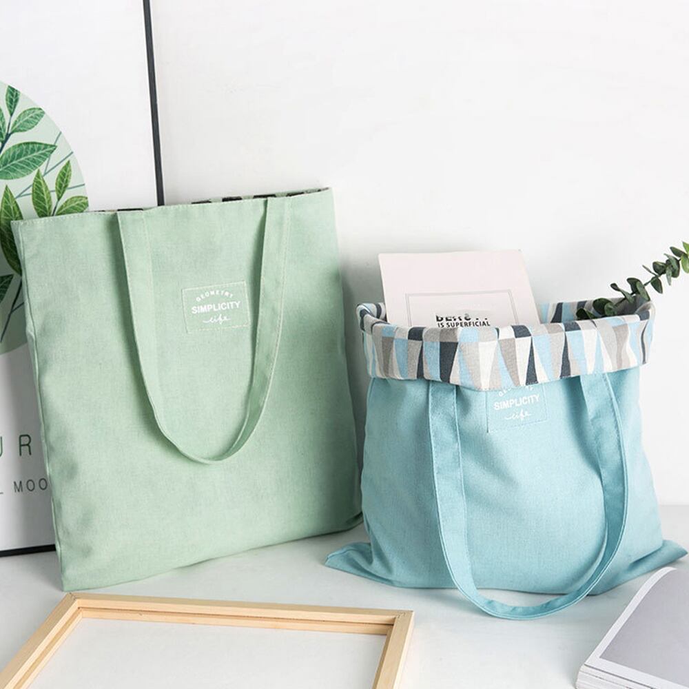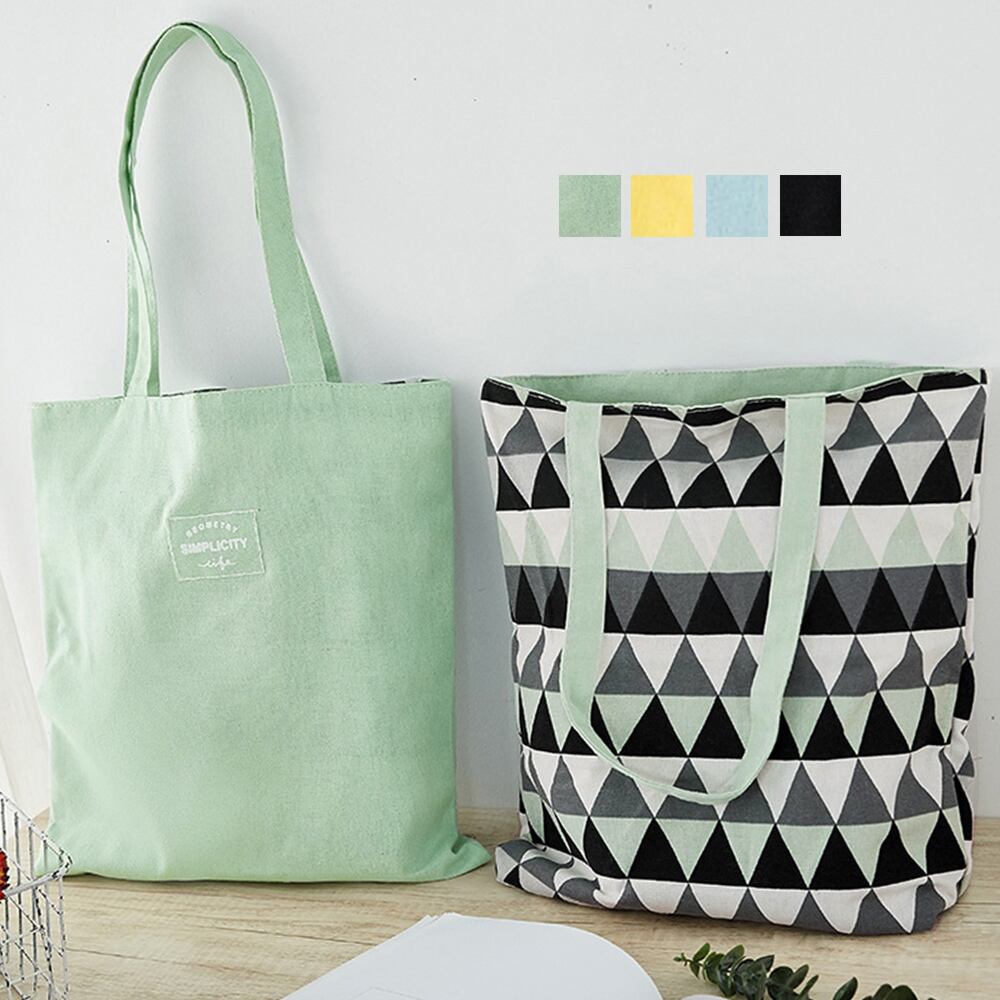 無地×三角柄のリバーシブルで使えるオシャレなキャンバスバッグ