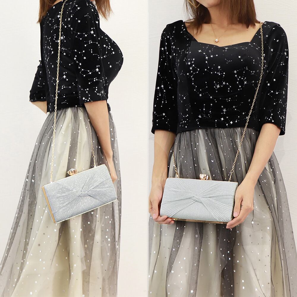 キラキラ フォーマルバッグ お呼ばれ 二次会 チェーンショルダーバッグ がま口サブバッグ エレガント 高級感リストバッグ