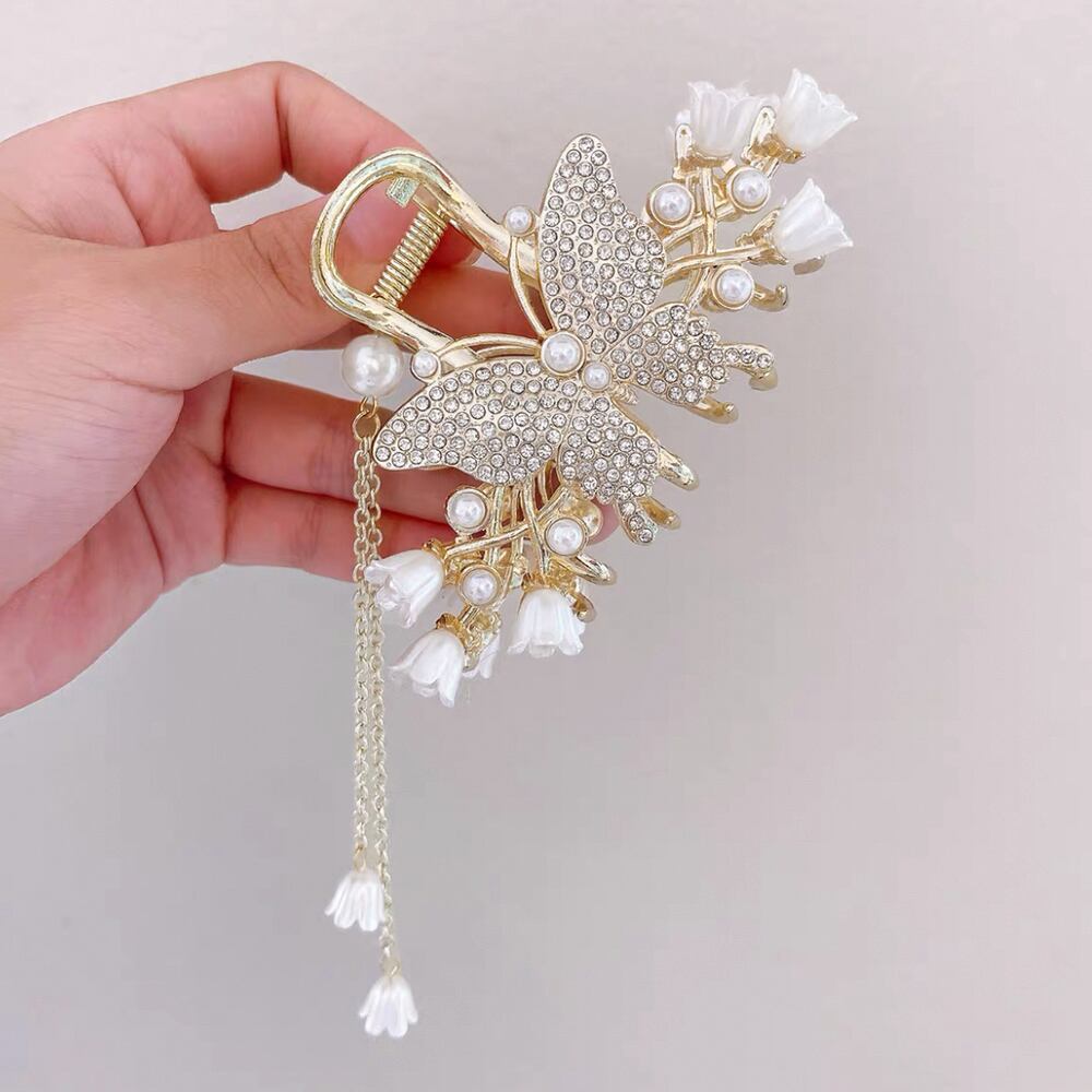 蝶のモチーフと揺れるチェーンがフェミニンな雰囲気を演出してくれるバンスクリップ