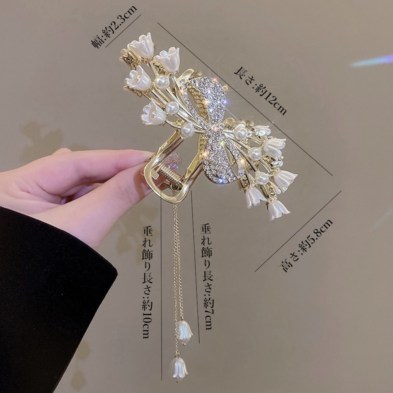 髪留め 韓国 パール ビジュー ヘアアレンジ キラキラ パーティー ジュエリー エレガント バンスクリップ 華やか髪飾り