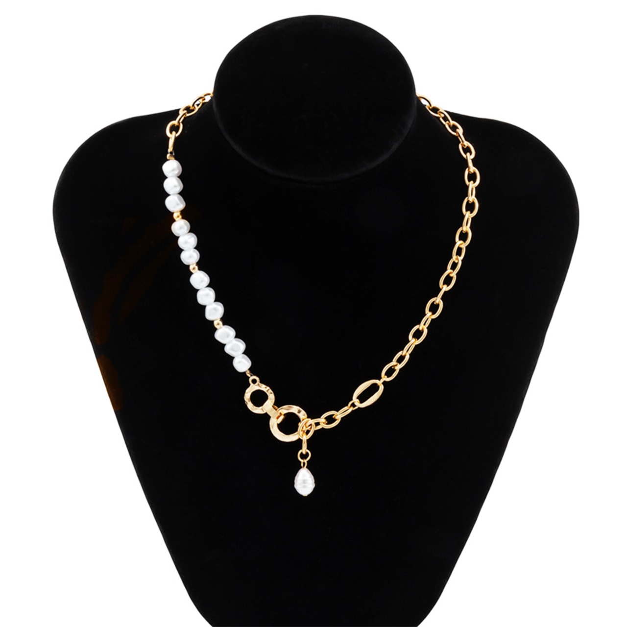 フェイクパールと太めチェーンの非対称デザインチェーンチョーカー