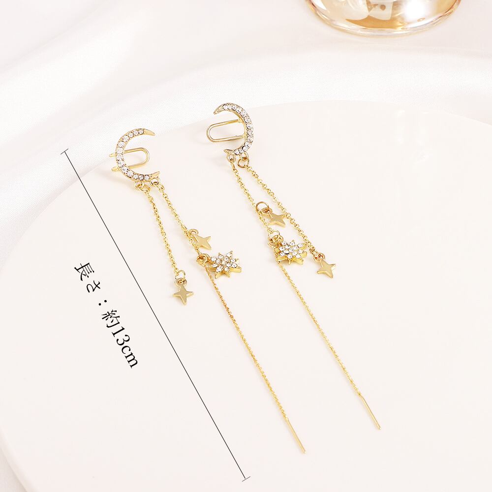 ロングピアス レディース 揺れるピアス 両耳用 韓国風アクセサリー チェーンピアス プチプラ イヤークリップ 星モチーフ